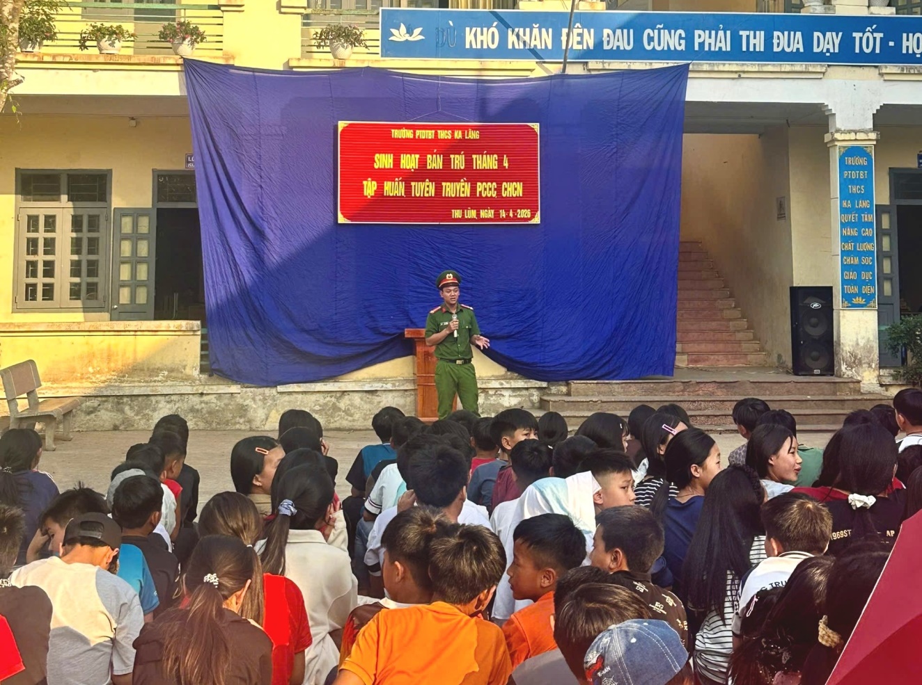 Công an xã Bum Tở phối hợp với Đội CSGT Đường bộ số 4 – Công an tỉnh Lai Châu tổ chức tuyên truyền pháp luật về ma túy, thuốc lá, an toàn giao thông và phòng, chống mua bán người cho 583 giáo viên, học sinh tại Trường THPT Mường Tè.