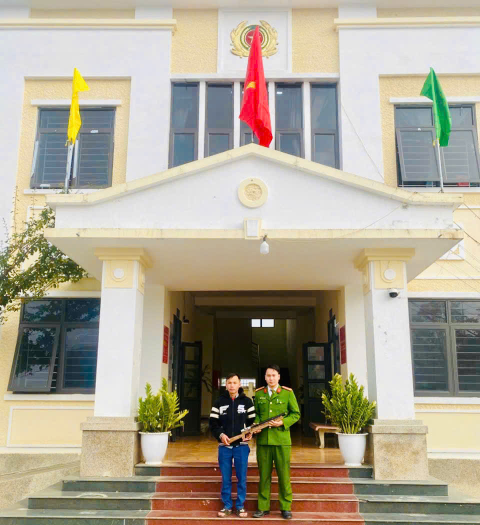 Hình ảnh cơ quan Công an tiếp nhận vũ khí do người dân đến giao nộp