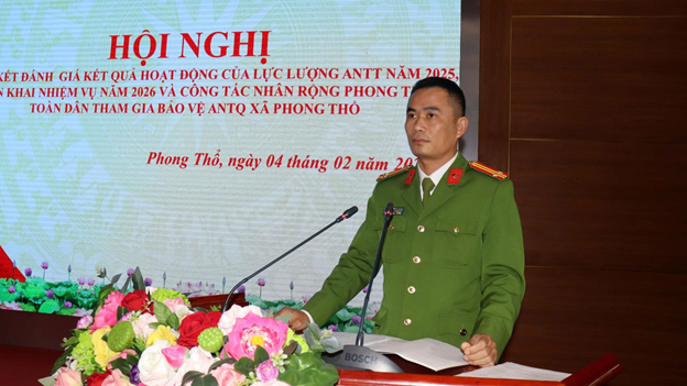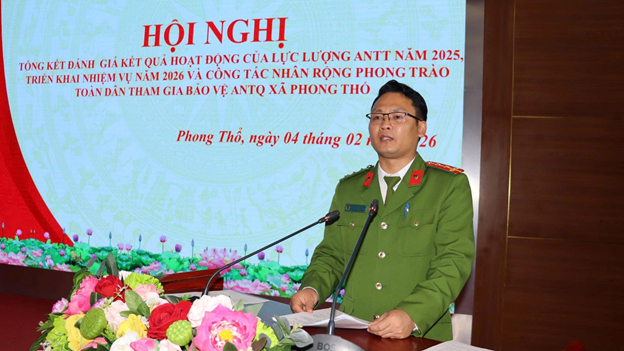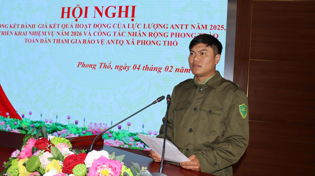 Tại Hội nghị, đại diện Công an xã Phong Thổ đã trình bày báo cáo tổng kết hoạt động của lực lượng tham gia bảo vệ ANTT ở cơ sở và kết quả công tác xây dựng, nhân rộng các mô hình, điển hình tiên tiến trong phong trào Toàn dân bảo vệ an ninh Tổ quốc năm 2025.