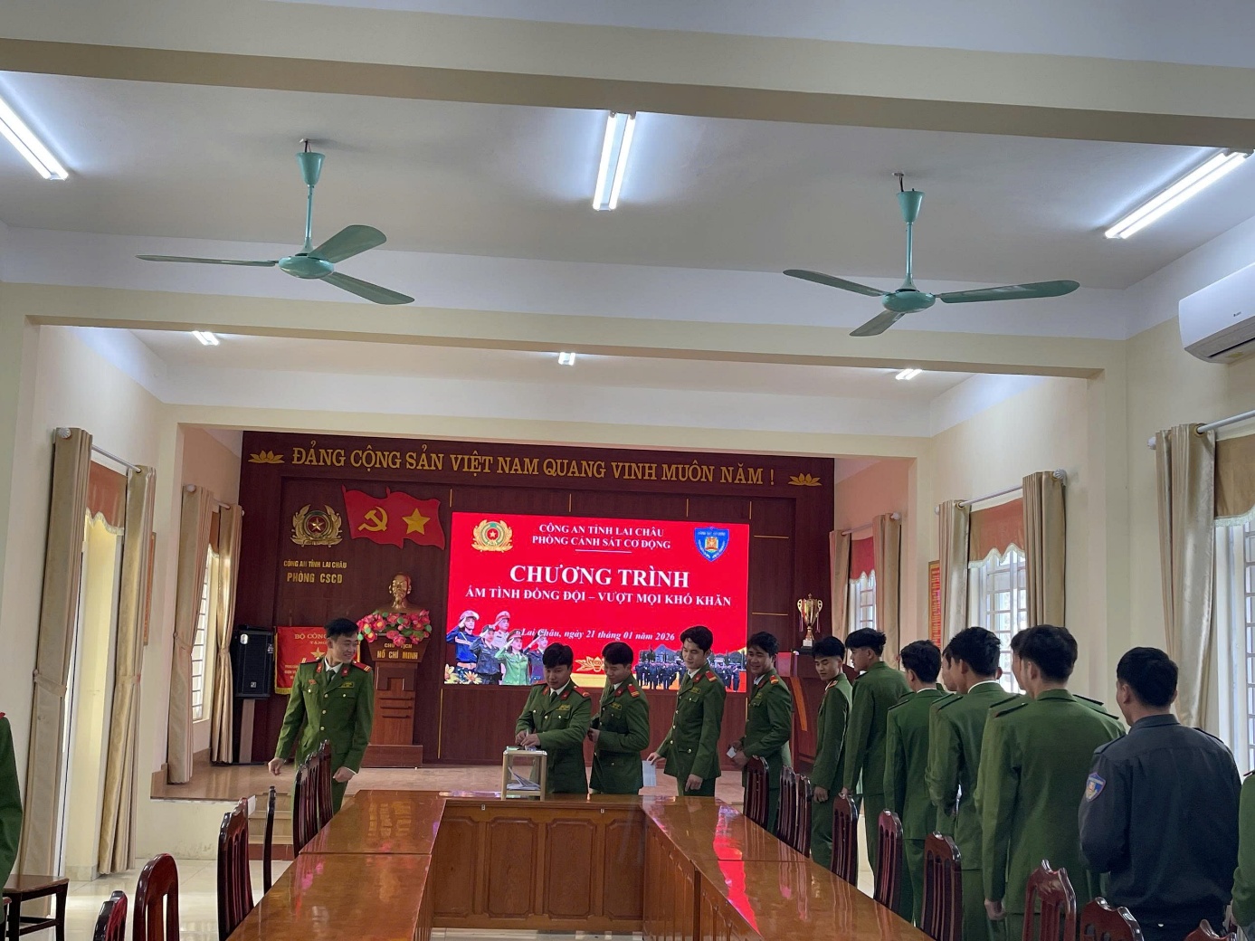 Bên cạnh các nhiệm vụ trọng tâm của lực lượng Cảnh sát cơ động, trong thời gian qua với tinh thần tương thân tương ái hỗ trợ giúp đỡ đồng chí đồng đội trên mọi mặt đời sống và công tác chuyên môn, tinh thần đoàn kết đã luôn được Đảng ủy, Lãnh đạo đơn vị quan tâm, chú trọng phát triển theo truyền thống quý báu của dân tộc Việt Nam “Truyền thống là sức mạnh”. Trên tinh thần đó với tình cảm gắn bó đoàn kết. Chiều ngày 21/01/2026 đơn vị đã tổ chức kêu gọi hỗ trợ cho đồng chí Hạ sỹ Lùy Chùy Cà là người dân tộc thiểu số, có hoàn cảnh gia đình đặc biệt khó khăn, hiện đang là chiến sĩ nghĩa vụ thực hiện nhiệm vụ tại phòng Cảnh sát cơ động, ở tuổi đời còn rất trẻ nhưng đã bị mắc phải căn bệnh suy thận giai đoạn 5. Căn bệnh ấy gây ảnh hưởng không nhỏ đến sức khỏe của Cà, đồng chí đang phải điều trị tích cực bằng phương pháp chạy thận tại bệnh viện Đa khoa tỉnh Lai Châu. Nhưng với sức trẻ, tinh thần lạc quan và sự động viên giúp đỡ của đồng chí đồng đội, Hạ sỹ Lùy Chùy Cà luôn lạc quan, phấn đấu không ngừng để hoàn thành tốt mọi nhiệm vụ được giao.
