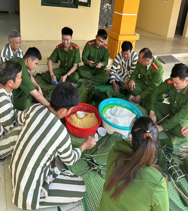 Nổi bật trong chuỗi hoạt động chuẩn bị Tết cho phạm nhân là hoạt động gói bánh chưng tết mang đầy ý nghĩa nhân văn qua đó giúp phạm nhân hiểu hơn về giá trị truyền thống của dân tộc, tạo không khí vui tươi, gắn kết. Hoạt động gói bánh trưng được diễn ra đồng loại ở cả 3 phân trại tạm giam và Trại tạm giam giam trung tâm với sự tham gia của Ban giám thị và cán bộ chiến sĩ. Số bánh trưng sau khi được nấu chín sẽ được phân phát đến các buồng giam giữ để bổ sung thêm khẩu phần ăn ngày Tết cho can phạm nhân, giúp họ đón Xuân trong điều kiện đầy đủ và ấm áp.