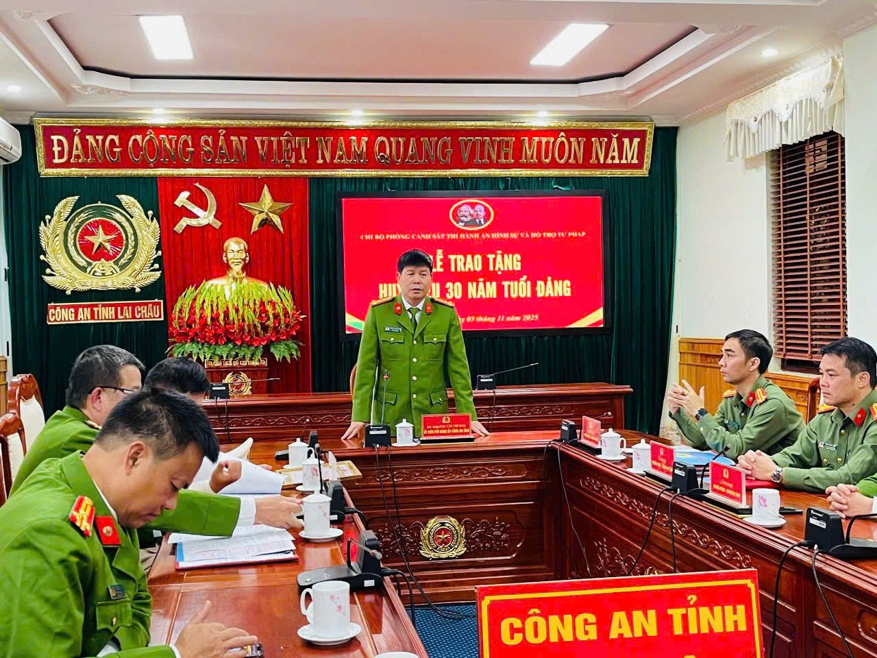 Hôm nay 05/11/2025, Chi bộ Phòng THAHS &HTTP Công an tỉnh Lai Châu long trọng tổ chức Lễ trao Huy hiệu 30 năm tuổi Đảng cho đồng chí Đinh Hồng Dương, Bí thư Chi bộ, Trưởng phòng.