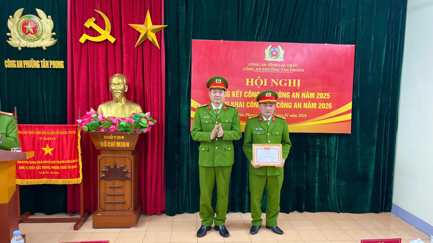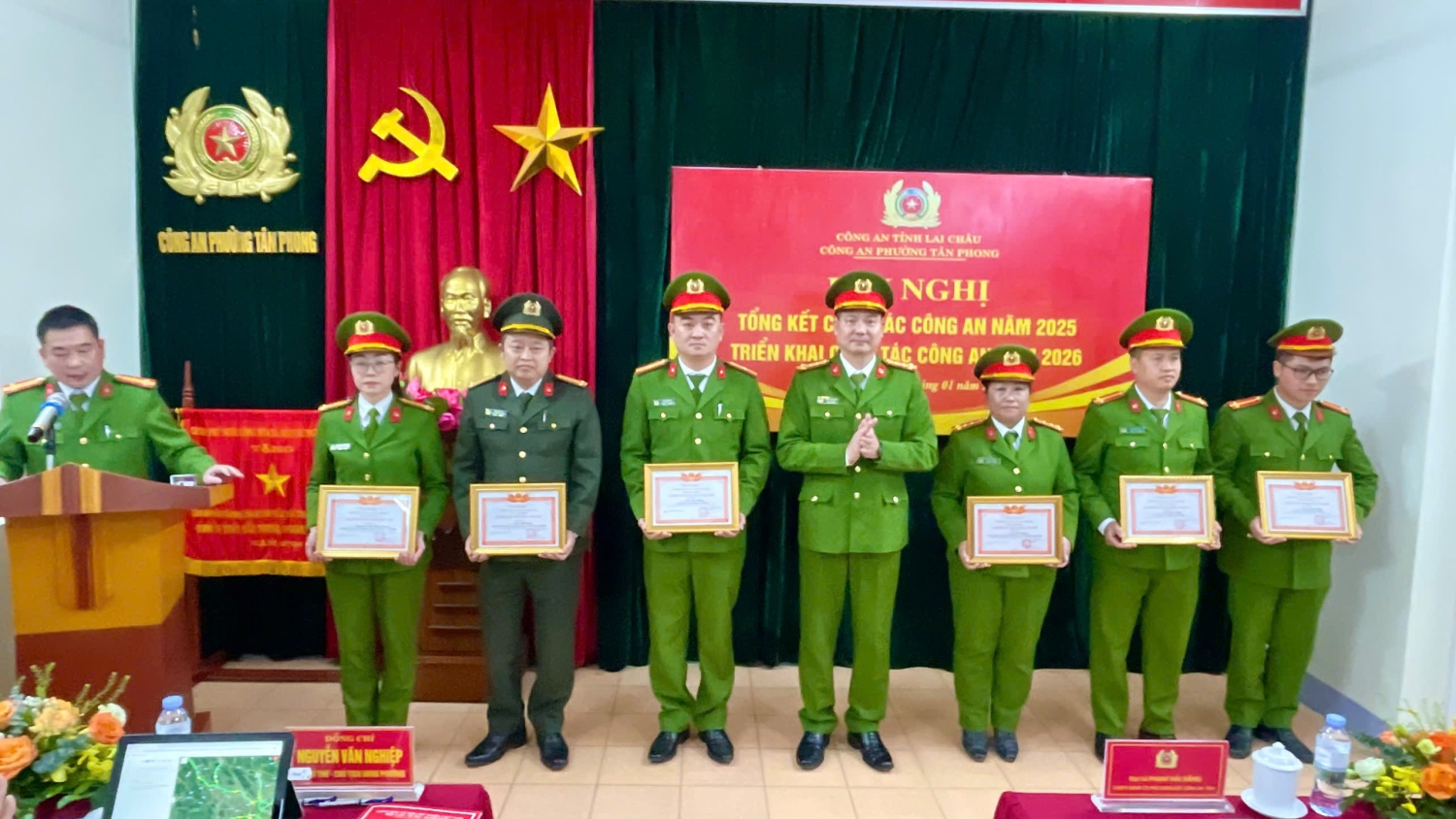 Nhân dịp này, UBND phường Tân Phong đã tặng Giấy khen cho 25 cá nhân có thành tích xuất sắc trong công tác bảo đảm an ninh, trật tự. Công an tỉnh Lai Châu tặng danh hiệu “Đơn vị Quyết thắng” cho Công an phường Tân Phong; đồng thời tặng 10 danh hiệu “Chiến sĩ thi đua cơ sở”.