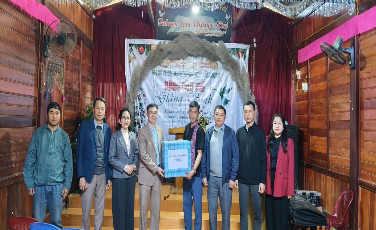 Đoàn công tác phường Tân Phong đến thăm, tặng quà chức mừng các chức sắc, chức việc, bà con theo đạo thuộc Điểm nhóm Xì Miền Khan nhân dịp Lễ Noel năm 2025