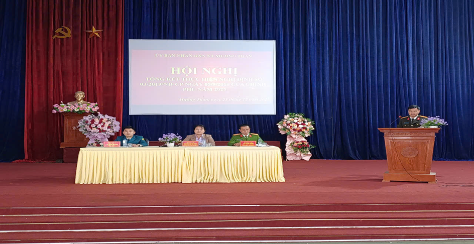 Chiều ngày 23/12/2025 Công an xã Mường Than phối hợp với Ban Chỉ huy quân sự xã tổ chức Hội nghị giao ban, tổng kết thực hiện Nghị định số 03/2019/NĐ-CP ngày 5/9/2019 của Chính phủ năm 2025, phương hướng nhiệm vụ năm 2026. Tới dự và chủ trì hội nghị có đồng chí Chủ tịch UBND xã, các đồng chí lãnh đạo Công an xã, Ban Chỉ huy quân sự xã, lực lượng tham gia bảo vệ ANTT ở cơ sở và lực lượng dân quân tự vệ trên địa bàn xã.