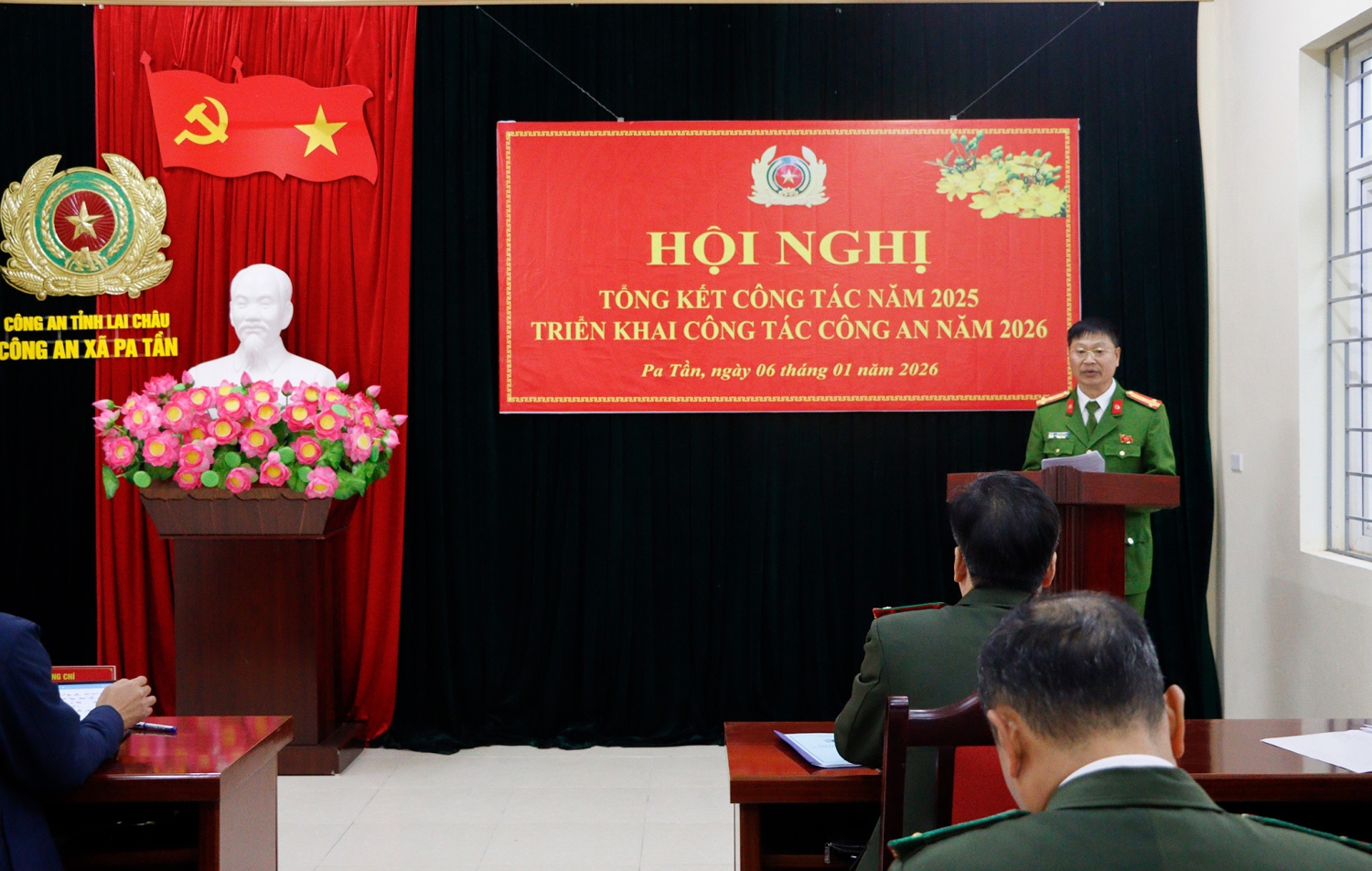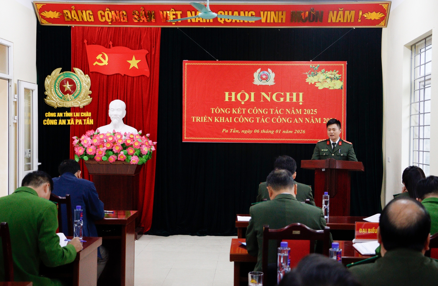 Phát biểu tại Hội nghị, Đại tá Sùng A Súa – Phó Bí thư Đảng ủy, Phó Giám đốc Công an tỉnh, đồng chí Lù Văn Quân – Bí thư Đảng ủy xã đã biểu dương những chiến công, kết quả Công an xã đã đạt được trong năm 2025. Đồng chí đề nghị Công an xã tiếp tục phát huy tinh thần đoàn kết, trách nhiệm, quyết liệt triển khai thực hiện hiệu quả các chỉ tiêu, nhiệm vụ công tác đã đề ra; chủ động nắm chắc tình hình, không để bị động, bất ngờ, không đi sau tội phạm; nâng cao hiệu quả công tác quản lý nhà nước về an ninh, trật tự, đẩy mạnh công tác nghiệp vụ cơ bản, tăng cường đấu tranh phòng, chống tội phạm, quyết tâm giữ vững địa bàn không ma túy; chú trọng xây dựng lực lượng Công an xã trong sạch, vững mạnh, góp phần bảo đảm an ninh, trật tự, phục vụ hiệu quả nhiệm vụ phát triển kinh tế xã hội của địa phương.