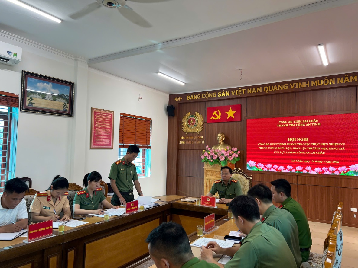 Phát biểu chỉ đạo Hội nghị, đồng chí Thượng tá Hà Thái Hoàn - Chánh Thanh tra Công an tỉnh yêu cầu Đoàn thanh tra thực hiện nghiêm quy định của pháp luật, bảo đảm khách quan, công tâm, chính xác; tập trung làm rõ các nội dung trọng tâm, kịp thời phát hiện, kiến nghị xử lý nghiêm các vi phạm (nếu có). Đồng thời, đề nghị các đơn vị được thanh tra chấp hành nghiêm Quyết định thanh tra, chuẩn bị đầy đủ hồ sơ, tài liệu, phối hợp chặt chẽ, tạo điều kiện thuận lợi để Đoàn hoàn thành nhiệm vụ. Đồng chí nhấn mạnh, tình hình buôn lậu, gian lận thương mại, hàng giả tiếp tục diễn biến phức tạp, thủ đoạn tinh vi, nhất là trên tuyến biên giới và không gian mạng. Việc triển khai thanh tra lần này là cần thiết nhằm đánh giá đúng thực trạng, kịp thời chấn chỉnh, khắc phục tồn tại. Qua đó, nâng cao trách nhiệm của các đơn vị, tăng cường hiệu lực, hiệu quả công tác phòng ngừa, đấu tranh, góp phần giữ vững an ninh kinh tế, trật tự an toàn xã hội trên địa bàn.