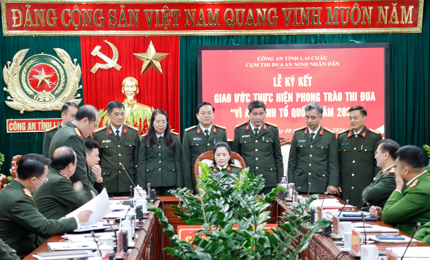 Tại buổi Lễ, lãnh đạo các đơn vị Cụm thi đua An ninh nhân dân đã thống nhất, ký kết giao ước thi đua “Vì ANTQ” năm 2026 gồm 10 nội dung. Trong đó, tổ chức quán triệt, thực hiện nghiêm túc các Chủ trương, Nghị quyết của Đảng ủy, Ban Giám đốc Công an tỉnh về nhiệm vụ bảo vệ an ninh quốc gia, bảo đảm trật tự, an toàn xã hội hội; bảo vệ an ninh, an toàn tuyệt đối các mục tiêu, công trình trọng điểm, các sự kiện chính trị, văn hóa, xã hội, các hoạt động của lãnh đạo Đảng, Nhà nước, các đoàn khách đến thăm, làm việc tại tỉnh Lai Châu; nắm chắc tình hình, chủ động phòng ngừa, đấu tranh có hiệu quả với âm mưu hoạt động của các thế lực thù địch, không để phát sinh, hình thành “điểm nóng” gây mất ổn định về ANTT; chú trọng, nâng cao chất lượng, hiệu quả hoạt động công tác nghiệp vụ cơ bản; thực hiện nghiêm các quy định của pháp luật về công tác điều tra, xử lý tội phạm, đặc biệt là tội phạm xâm hại an ninh quốc gia. Tăng cường công tác giáo dục chính trị, tư tưởng, nâng cao bản lĩnh chính trị, phẩm chất đạo đức, cách mạng cho cán bộ, chiến sĩ; hưởng ứng, đẩy mạnh thực hiện các phong trào thi đua “Vì ANTQ” do các cấp phát động, tổ chức hoạt động thiết thực chào mừng Kỷ niệm 80 năm Ngày truyền thống ANND; quyết tâm hoàn thành và hoàn thành vượt các chỉ tiêu nhiệm vụ công tác được giao.