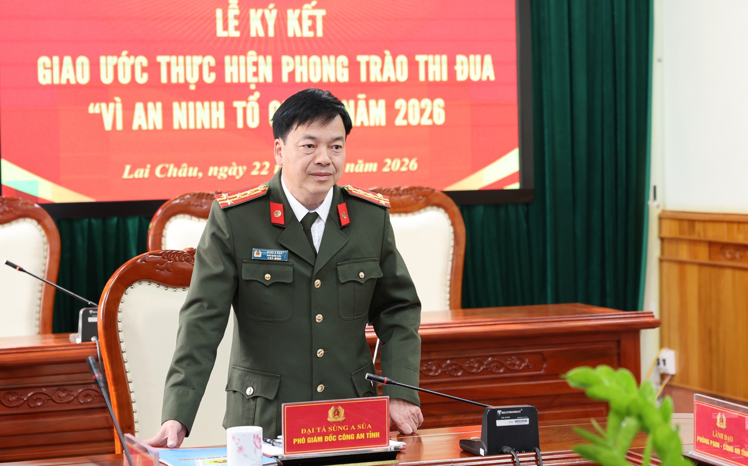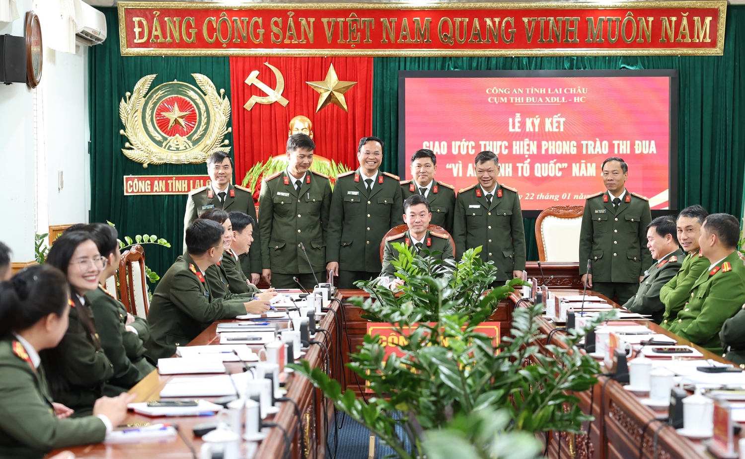 Sáng ngày 22/01, Cụm thi đua Xây dựng lực lượng – Hậu cần tổ chức Lễ ký kết giao ước thực hiện phong trào thi đua “Vì an ninh Tổ quốc” năm 2026. Đại tá Sùng A Súa – Phó Giám đốc Công an tỉnh dự, chỉ đạo buổi lễ. Tham dự lễ có lãnh đạo các phòng thuộc Cụm thi đua Xây dựng lực lượng – Hậu cần, đại diện lãnh đạo thường trực thi đua các cụm An ninh nhân dân, Cảnh sát nhân dân…