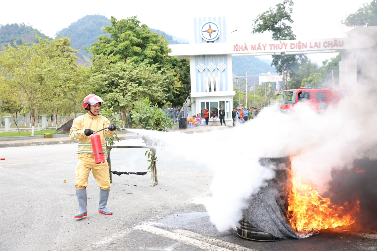 Ngay sau khi phát hiện tình huống, Công an tỉnh Lai Châu đã kịp thời triển khai các phương án nghiệp vụ, huy động lực lượng Cảnh sát cơ động, Cảnh sát đặc nhiệm, các đơn vị chức năng phối hợp chặt chẽ với lực lượng bảo vệ nhà máy, nhanh chóng khoanh vùng, cô lập mục tiêu, tổ chức chế áp, vô hiệu hóa thiết bị bay không người lái, bảo đảm tuyệt đối an toàn cho người, phương tiện và công trình.
