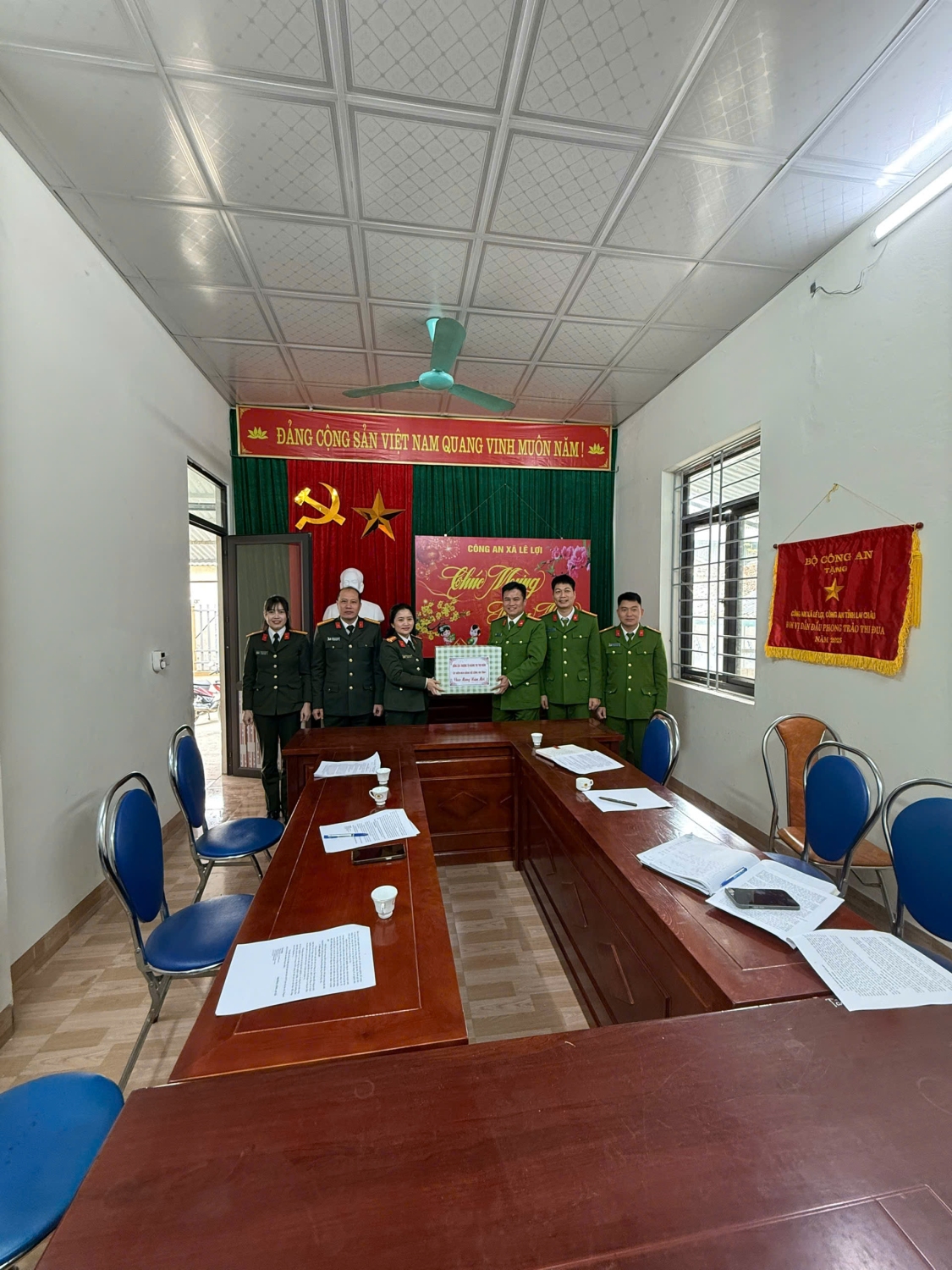 Nhân dịp đầu xuân năm mới đồng chí Hoàng Thị Thu Hoàn Ủy viên Ban Chấp hành Đảng bộ Công an tỉnh trao quà, động viên lực lượng Công an xã tiếp túc khắc phục khó khăn, không ngừng phấn đấu, nỗ lực hoàn thành xuất sắc các nhiệm vụ công tác được giao.