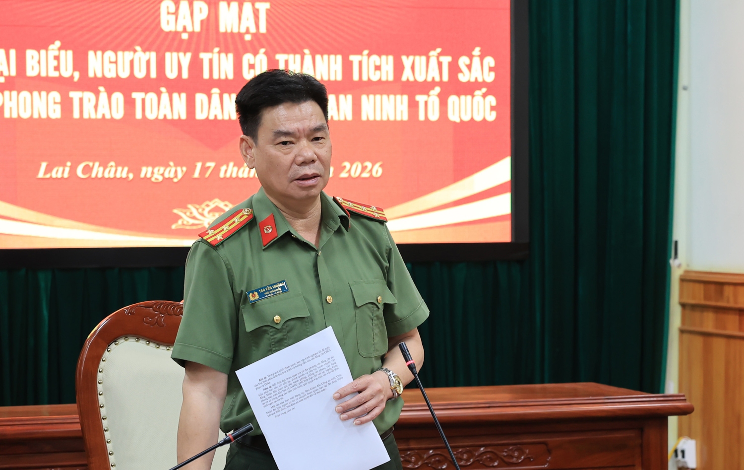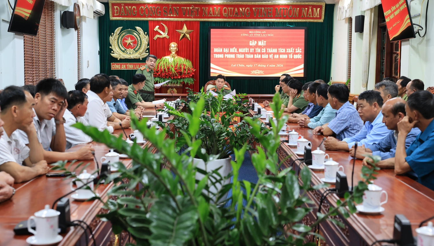 Chiều ngày 17/4, Công an tỉnh Lai Châu tổ chức Gặp mặt đoàn đại biểu người có uy tín tiêu biểu trong phong trào toàn dân bảo vệ an ninh Tổ quốc (BVANTQ) đợt 1 năm 2026. Đại tá Tao Văn Trường – Phó Giám đốc Công an tỉnh dự, chủ trì buổi gặp mặt; cùng dự có đại diện lãnh đạo một số phòng chức năng Công an tỉnh.