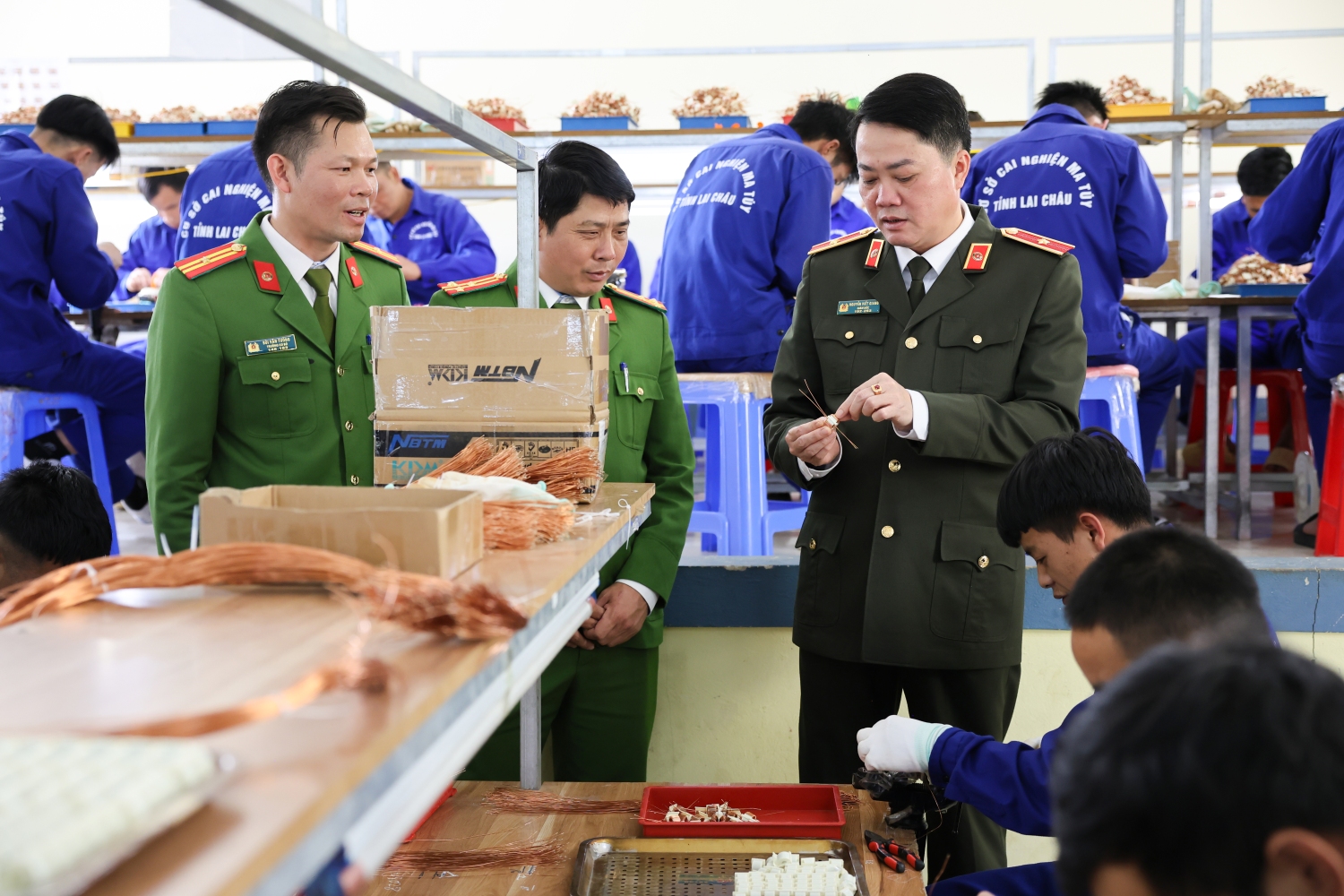 Chiều 02/3/2026, Công an tỉnh Lai Châu tổ chức buổi làm việc với Cơ sở cai nghiện tỉnh nhằm đánh giá kết quả 01 năm tiếp nhận nhiệm vụ quản lý Nhà nước về cai nghiện ma túy và quản lý sau cai nghiện. Thiếu tướng Nguyễn Viết Giang, Ủy viên Ban Thường vụ Tỉnh ủy, Giám đốc Công an tỉnh chủ trì buổi làm việc. Cùng dự có Đại tá Phạm Hải Đăng, Phó Giám đốc - Thủ trưởng Cơ quan Cảnh sát điều tra Công an tỉnh; đại diện lãnh đạo các đơn vị chức năng Công an tỉnh...