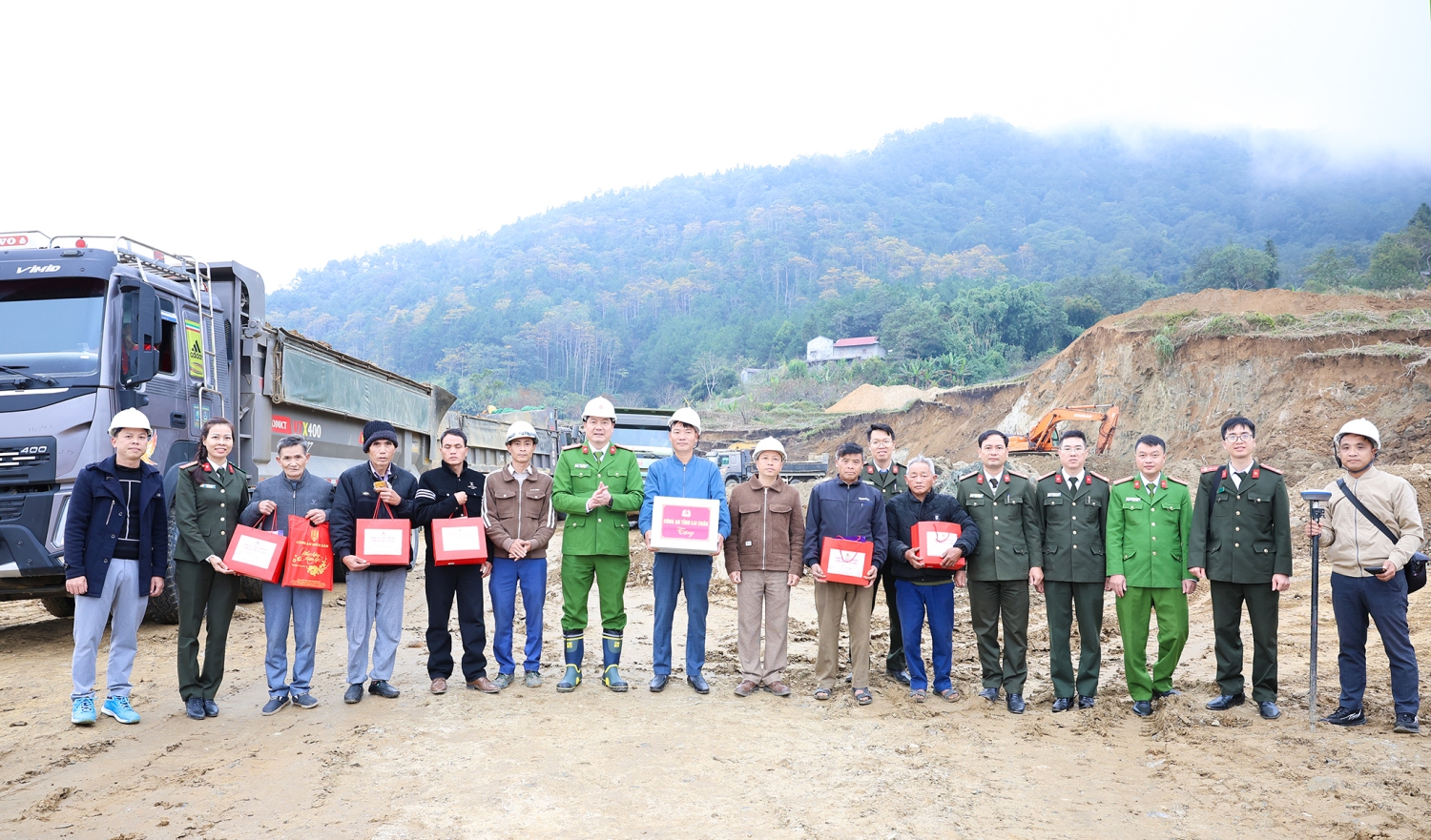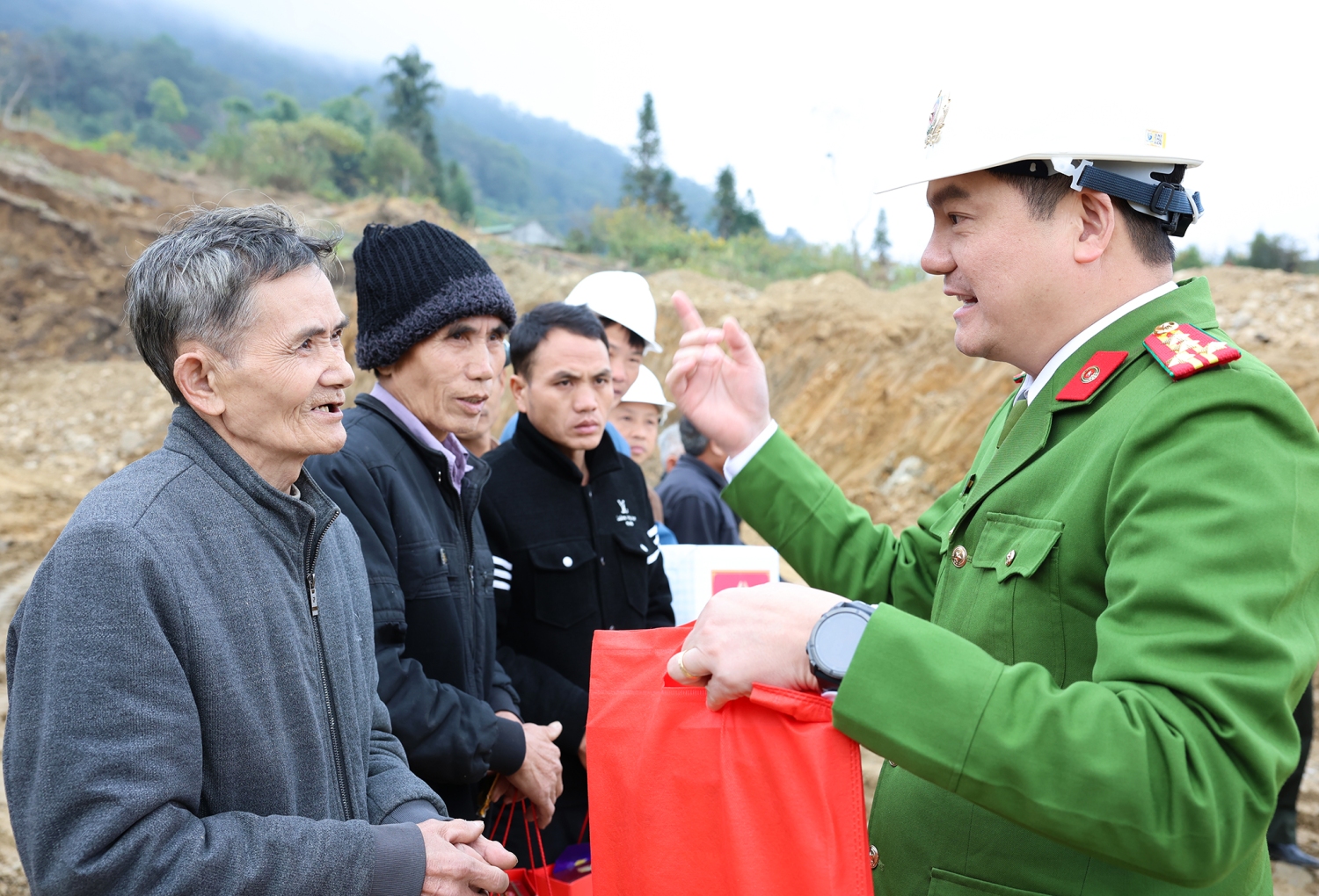 Nhân dịp này, thay mặt Đảng ủy, Ban Giám đốc Công an tỉnh, Đại tá Phạm Hải Đăng đã trao tặng những phần quà ý nghĩa cho các kỹ sư, công nhân tại công trường và tri ân các hộ dân có đóng góp tích cực trong việc hiến đất. Những cái bắt tay ấm áp, những món quà Tết ngay giữa công trường lộng gió biên cương đã thể hiện sự quan tâm kịp thời, thắt chặt tình đoàn kết quân dân.