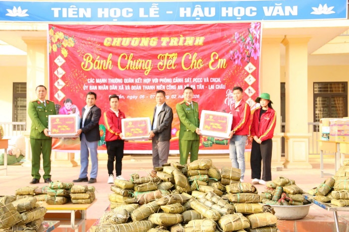 Hưởng ứng các hoạt động an sinh xã hội, hướng tới chăm lo cho thiếu nhi vùng sâu, vùng xa, Phòng Cảnh sát PCCC và CNCH – Công an tỉnh Lai Châu đã phối hợp với các mạnh thường quân, UBND xã Pa Tần và Đoàn Thanh niên xã Pa Tần tổ chức chương trình thiện nguyện với hai hoạt động ý nghĩa “Con đường sáng tương lai” và “1000 bánh chưng cho em” tại điểm trường THPT bán trú, THCS và Tiểu học Nậm Ban.