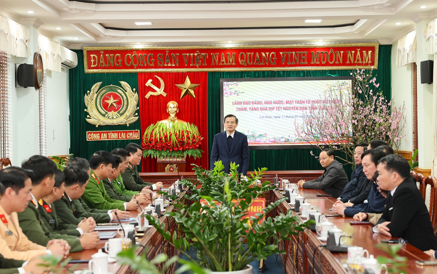Sáng 11/2/2026, Đoàn công tác lãnh đạo Đảng, Nhà nước do Phó Giáo sư, Tiến sĩ Đoàn Minh Huấn - Ủy viên Bộ Chính trị, Giám đốc Học viện Chính trị Quốc gia Hồ Chí Minh làm Trưởng đoàn đã đến thăm, chúc Tết cán bộ, chiến sĩ Công an tỉnh Lai Châu. Cùng đi với Đoàn có các đồng chí lãnh đạo Đảng ủy Mặt trận Tổ quốc (MTTQ), các đoàn thể Trung ương, Ủy ban Trung ương MTTQ Việt Nam; lãnh đạo Học viện Chính trị Quốc gia Hồ Chí Minh; lãnh đạo các vụ, cục các cơ quan Trung ương.