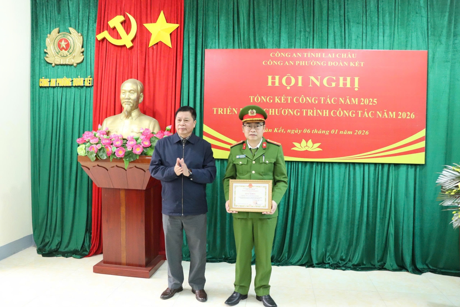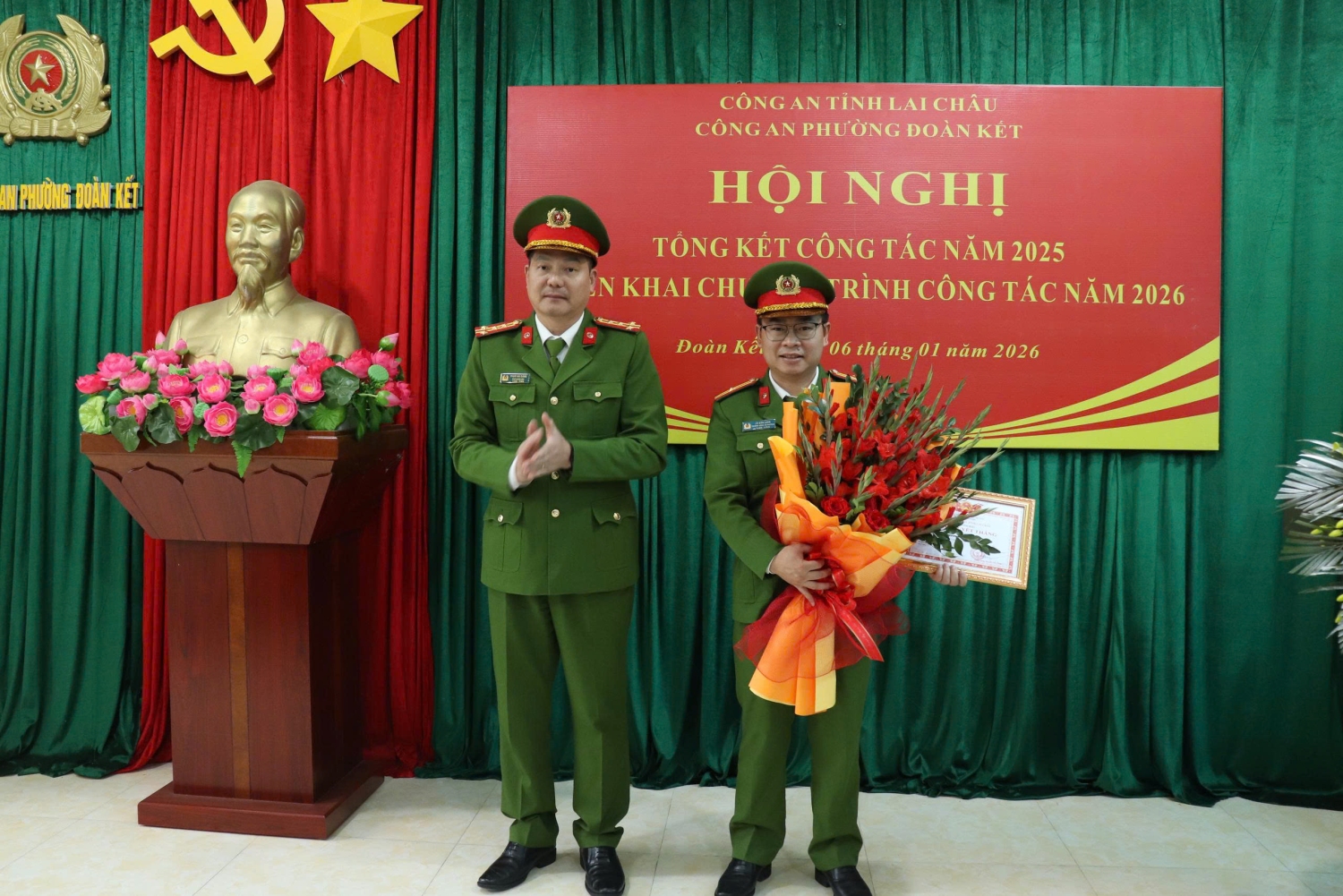 Tại hội nghị, Công an phường Đoàn Kết đã triển khai nhiệm vụ công tác năm 2026 và phát động phong trào thi đua. Nhân dịp này, tập thể Công an phường Đoàn Kết được công nhận danh hiệu “Đơn vị Quyết thắng”; 10 cá nhân đạt danh hiệu “Chiến sĩ thi đua cơ sở”; 01 tập thể và 10 cá nhân có thành tích xuất sắc trong đợt cao điểm tấn công, trấn áp tội phạm và phong trào Toàn dân bảo vệ an ninh Tổ quốc năm 2025 được UBND phường Đoàn Kết tặng Giấy khen.