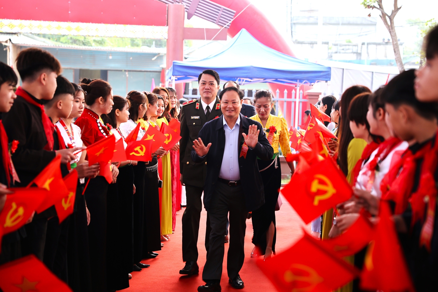 Dự buổi lễ có các đồng chí lãnh đạo tỉnh Lai Châu: Lê Minh Ngân – Ủy viên Ban Chấp hành Trung ương Đảng, Bí thư Tỉnh ủy; Sùng A Hồ – Phó Bí thư Thường trực Tỉnh ủy; Nguyễn Tuấn Anh – Ủy viên dự khuyết Ban Chấp hành Trung ương Đảng, Phó Bí thư Tỉnh ủy; Nguyễn Ngọc Vinh – Phó Bí thư Tỉnh ủy, Chủ nhiệm Ủy ban Kiểm tra Tỉnh ủy; Tống Thanh Hải – Phó Chủ tịch Thường trực UBND tỉnh; Tẩn Thị Quế – Phó Chủ tịch HĐND tỉnh. Về phía khách mời Trung ương có đồng chí Huỳnh Văn Chương – Cục trưởng Cục Quản lý chất lượng, Bộ Giáo dục và Đào tạo, cùng các chuyên viên, cán bộ của Cục. Tham dự buổi lễ còn có đại diện lãnh đạo các sở, ban, ngành, lực lượng vũ trang tỉnh, đơn vị thi công, cán bộ, giáo viên, học sinh và Nhân dân trên địa bàn.
