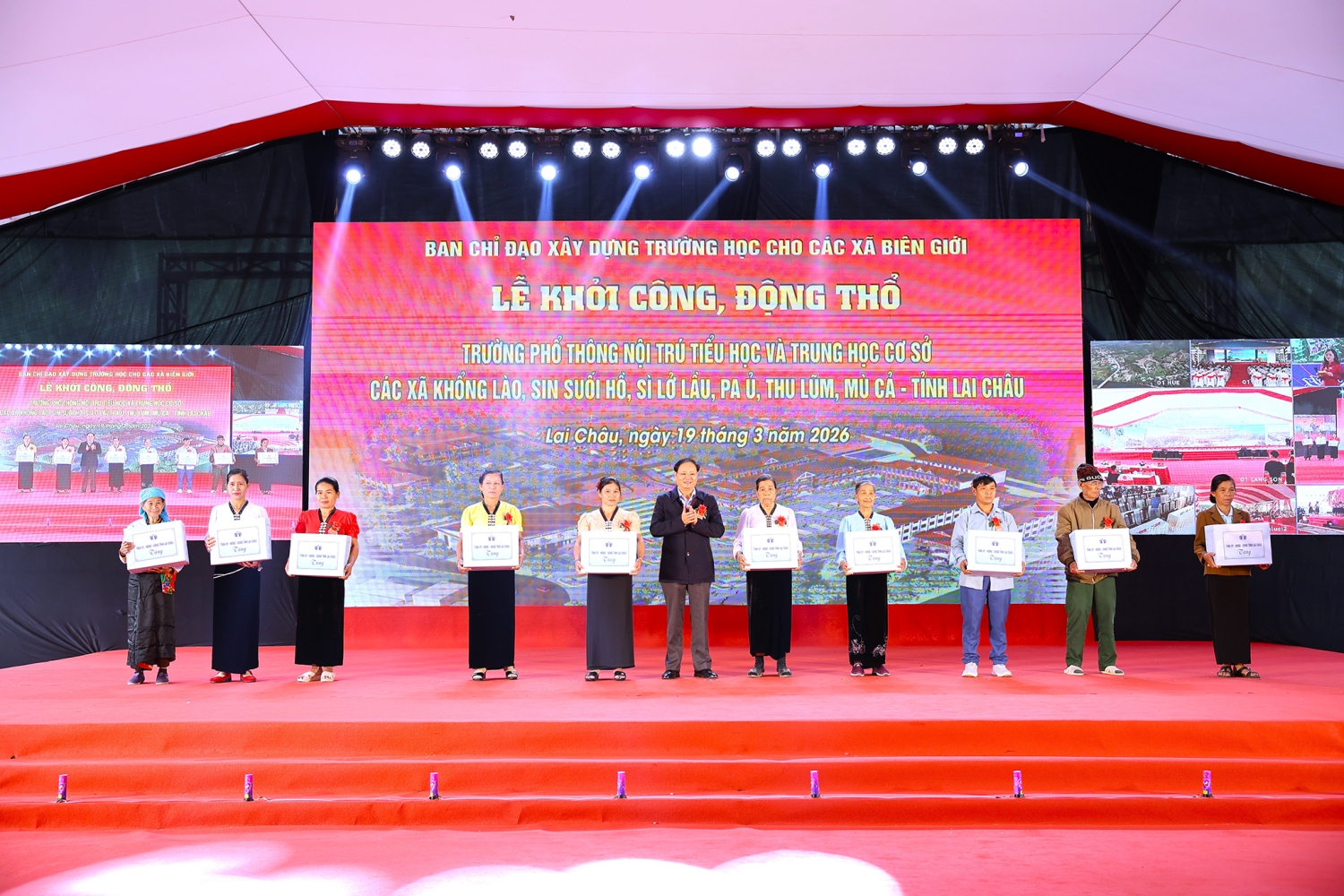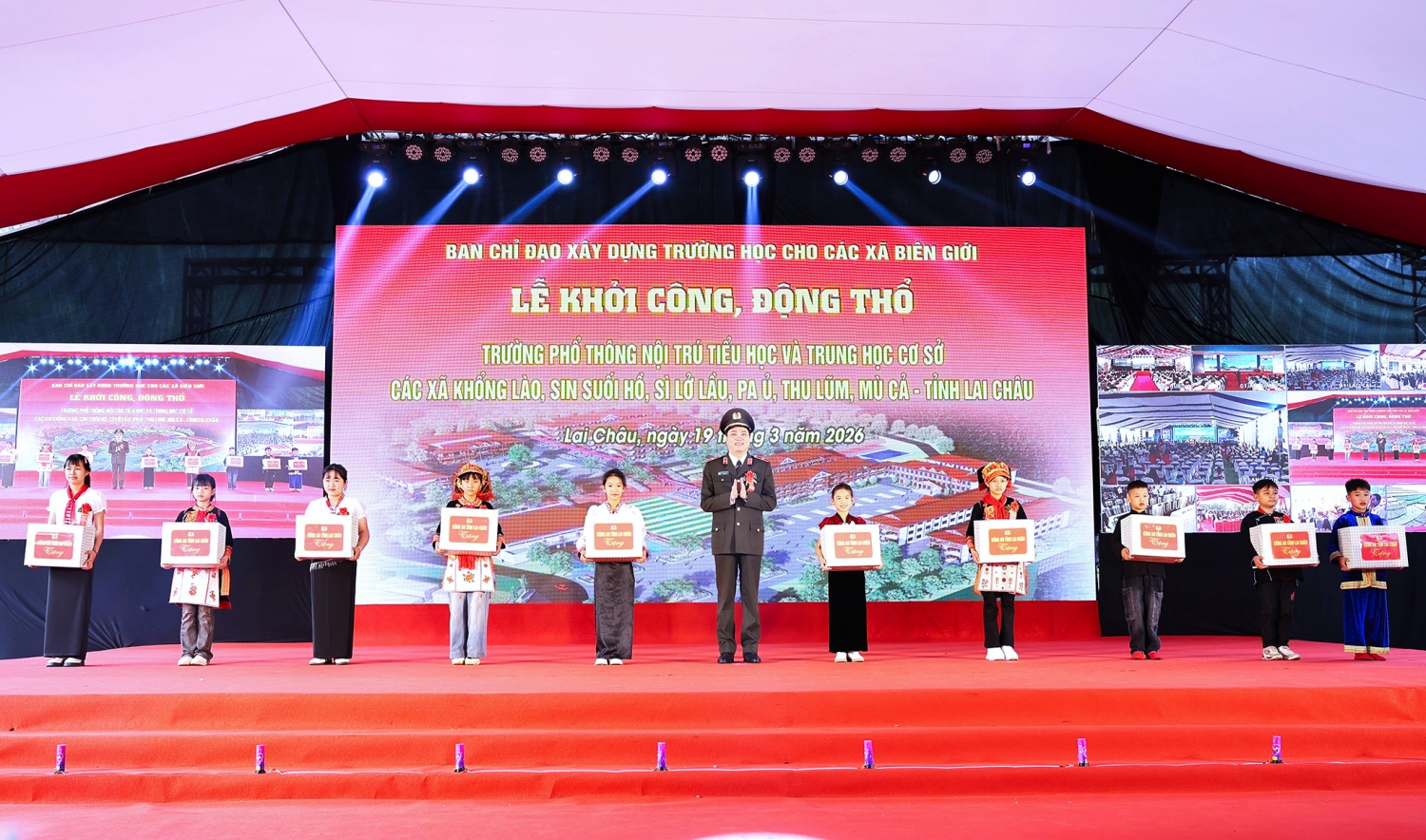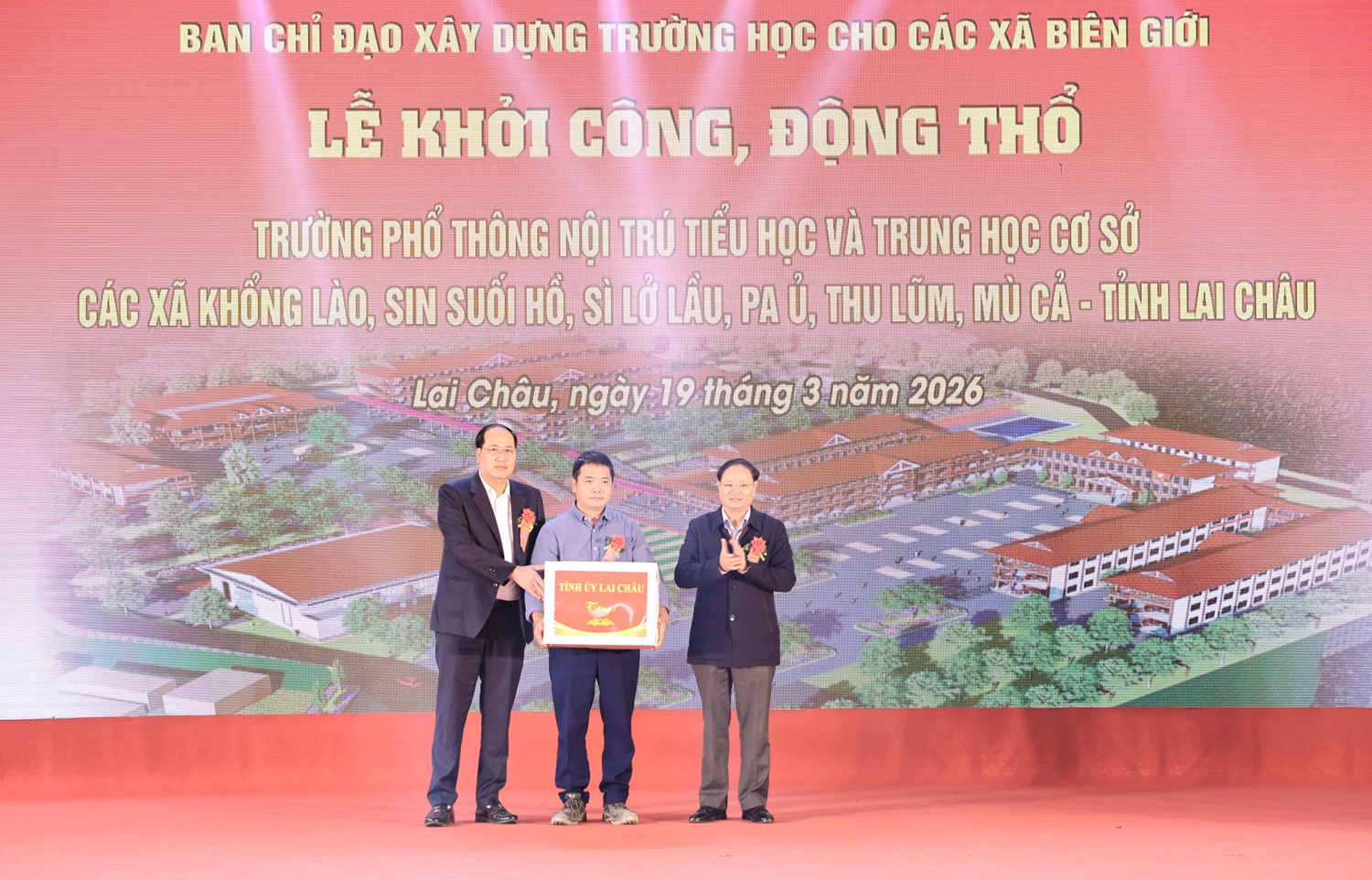 Đây là một trong 17 điểm cầu trên cả nước được tổ chức theo hình thức trực tiếp kết hợp trực tuyến, đồng loạt khởi công xây dựng các trường nội trú liên cấp, nhằm triển khai thực hiện chủ trương của Bộ Chính trị về xây dựng trường học vùng biên giới.