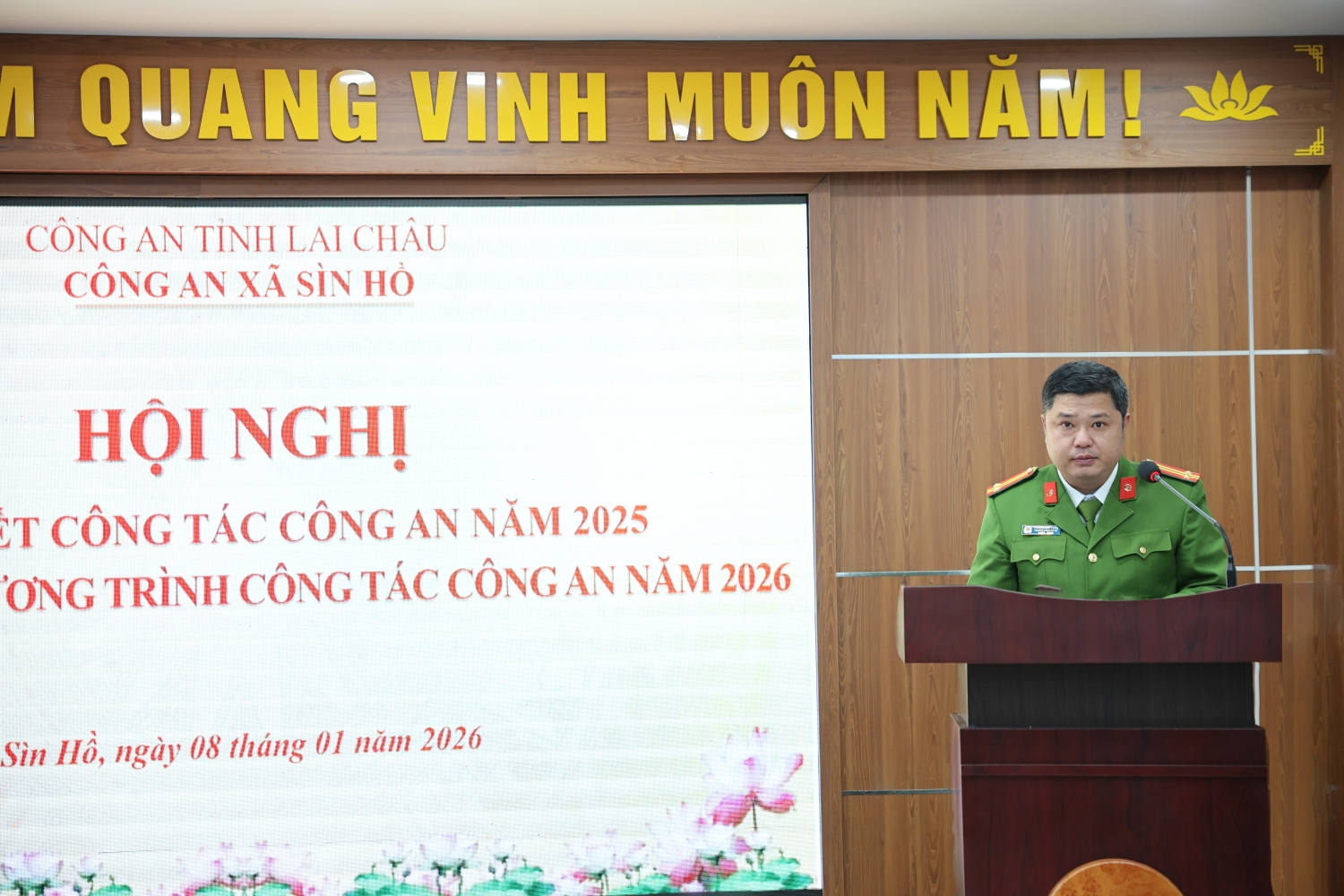 Phát biểu chỉ đạo tại hội nghị, đồng chí Đại tá Sùng A Súa – Phó Bí thư Đảng ủy, Phó Giám đốc Công an tỉnh và đồng chí Lê Bá Sơn – Phó Bí thư Đảng ủy, Chủ tịch UBND xã ghi nhận, biểu dương những kết quả, thành tích mà tập thể, cán bộ, chiến sĩ Công an xã Sìn Hồ đạt được trong năm 2025; đồng thời yêu cầu đơn vị tiếp tục đổi mới phương pháp công tác, chủ động nắm chắc tình hình địa bàn, nâng cao hiệu quả phối hợp và xây dựng lực lượng Công an xã chính quy, tinh nhuệ, đáp ứng yêu cầu nhiệm vụ trong tình hình mới.