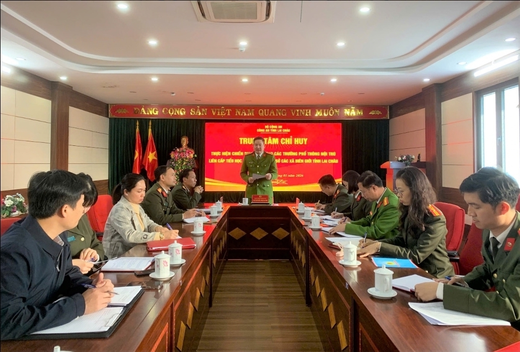 Ngày 05/02/2026, tại Trung tâm chỉ huy chiến dịch, Đại tá Phạm Hải Đăng, Phó Giám đốc Công an tỉnh Lai Châu đã chủ trì cuộc họp giao ban nhằm rà soát tiến độ và định hướng triển khai các hạng mục trọng yếu của dự án xây dựng trường phổ thông nội trú liên cấp tại các xã biên giới.