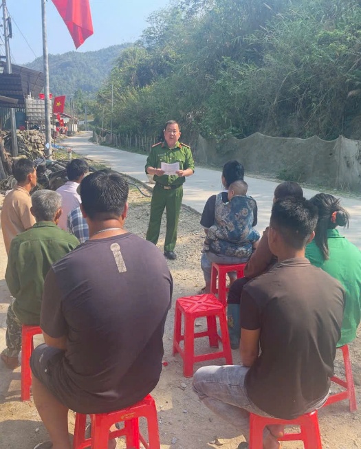 Xác định địa bàn có đông đồng bào dân tộc thiểu số sinh sống, trình độ nhận thức pháp luật còn hạn chế, Công an xã đã chủ động tham mưu chính quyền, phối hợp với các ban ngành, đoàn thể và các bản để tổ chức các buổi tuyên truyền tập trung tại các bản xung quanh mốc giới số 42 đến mốc giới 48. Công an xã tập trung phổ biến các văn bản pháp luật quan trọng như: Luật Xuất cảnh, nhập cảnh của công dân Việt Nam 2019 số 49/2019/QH14; Quy định về việc qua lại biên giới và các thủ tục cấp hộ chiếu, giấy thông hành theo đúng quy định của Nhà nước. Sau những buổi tuyên truyền tập trung tại các bản, Công an xã còn thực hiện tuyên truyền cho người dân khi đến trụ sở Công an xã làm định danh điện tử mức độ 2.