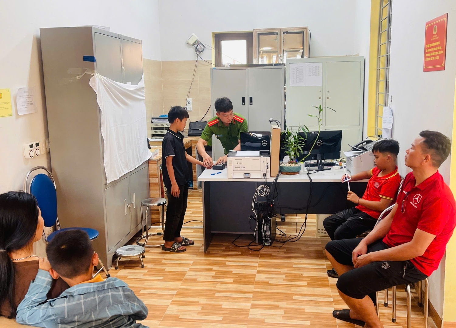 Với tinh thần "làm hết việc, không làm hết giờ", Tổ công tác của Công an xã đã bố trí thời gian thu nhận hồ sơ linh hoạt, kể cả ngoài giờ hành chính và các ngày nghỉ cuối tuần để tạo điều kiện thuận lợi nhất cho học sinh không bị ảnh hưởng đến lịch học tập. Trong quá trình thực hiện nhiệm vụ, các cán bộ chiến sĩ luôn thể hiện thái độ ân cần, niềm nở. Việc thu thập sinh trắc học đối với các em nhỏ đôi khi cần sự kiên nhẫn hơn, do đó, lực lượng Công an xã luôn tận tình hướng dẫn, tạo không khí vui vẻ, thoải mái để các em hợp tác tốt nhất.