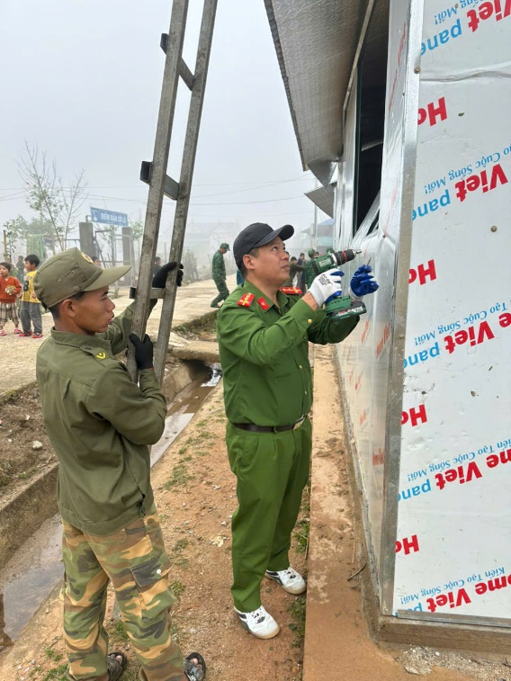 Tổ chức huy động CBCS phối hợp với các cơ quan, lực lượng vũ trang trên địa bàn, góp ngày công tiến hành tu sửa lại các căn nhà bị hư hỏng, kêu gọi mỗi cán bộ chiến sĩ Công an xã ủng hộ lương thực, giúp nhân dân bị ảnh hưởng khắc phúc khó khăn, với tổng giá trị mỗi xuất quà 120 nghìn đồng/1 nhà bị ảnh hưởng thiên tai.