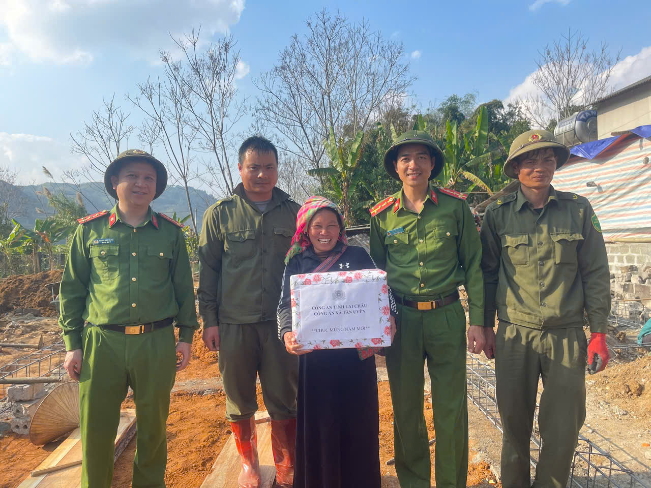 Nhân dịp Tết Nguyên đán sắp đến, để không ai bị bỏ lại phía sau, đón tết trong ngôi nhà ấm áp, ngày 30/01/2026 Công an xã Tân Uyên đã tổ chức hỗ trợ gia đình bà Lò Thị Khóa, sinh năm: 1985 - một hộ nghèo tại thôn Chạm Cả, xã Tân Uyên, tỉnh Lai Châu xây dựng nhà ở, đồng thời trao tặng phần quà ý nghĩa nhằm giúp gia đình ổn định cuộc sống, dự kiến công trình sẽ sớm hoàn thành trước Tết Nguyên đán Bính Ngọ để gia đình yên tâm vui Xuân, đón Tết.