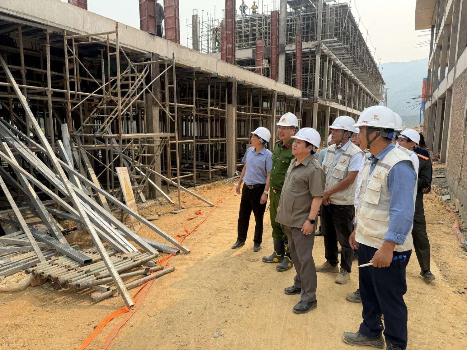Tại các điểm kiểm tra, Đoàn công tác đã trực tiếp nắm bắt tiến độ thi công của từng trường. Tại Trường phổ thông nội trú liên cấp TH&THCS xã Pa Tần: Đơn vị thi công báo cáo hiện đang tập trung toàn lực cho khâu hoàn thiện sau khi đã hoàn thành phần thô các khối nhà chính. Các tổ đội công nhân đang khẩn trương lắp đặt hệ thống điện, nước âm tường và tiến hành chát ngoài đồng loạt các khối nhà lớp học. Tại Trường phổ thông nội trú liên cấp TH&THCS xã Hua Bum: Đoàn ghi nhận không khí lao động sôi nổi với việc hoàn thành 100% phần móng công trình. Nhà thầu đang tiếp tục huy động thêm máy móc, nhân lực để triển khai xây dựng phần thô tầng 1, đảm bảo bám sát khung thời gian đã cam kết. Tại Trường phổ thông nội trú liên cấp TH&THCS xã Bum Nưa: các hạng mục lớp học và phòng bộ môn đã vươn cao, đang trong giai đoạn đổ bê tông cột và sàn tầng 2. Riêng khu vực nhà ăn và nội trú học sinh cũng đang được các nhà thầu đẩy nhanh tiến độ xây thô.