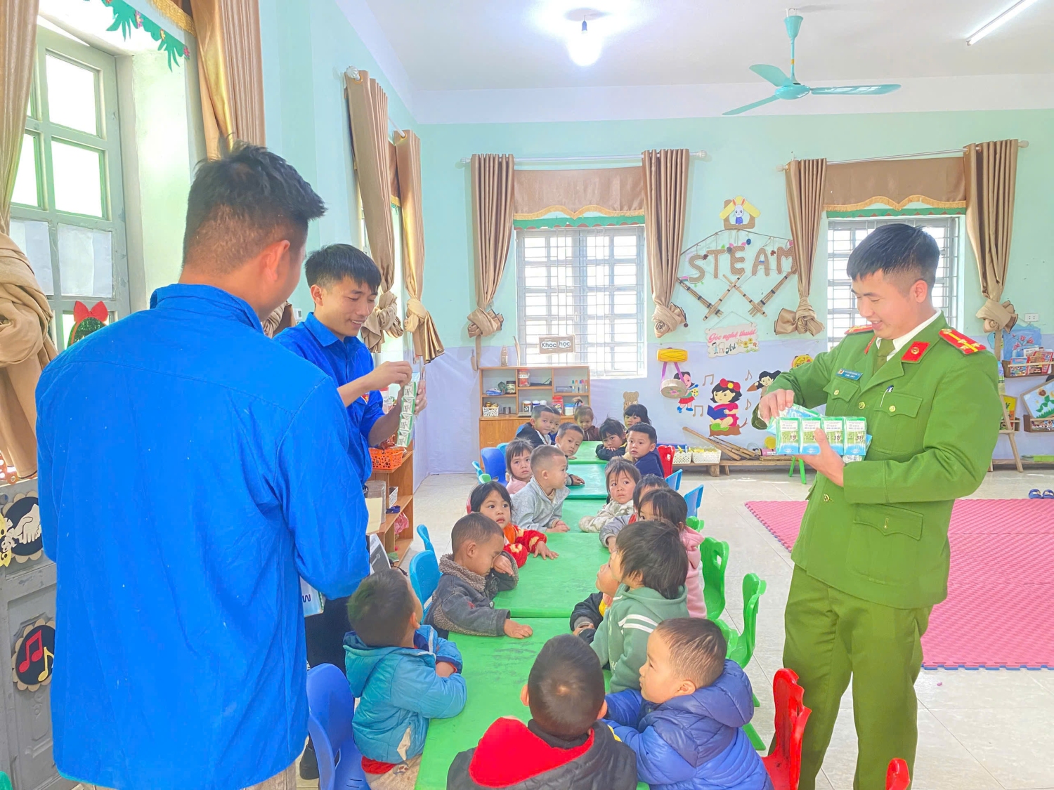 Phát huy tinh thần xung kích, tình nguyện vì cộng đồng ngày 27/01/2026 Đoàn Thanh niên Công an xã Nậm Sỏ đã tổ chức hoạt động tình nguyện hỗ trợ Trường Mầm non xã Nậm Sỏ đổ sân khuôn viên vui chơi và tặng sữa cho các em học sinh.