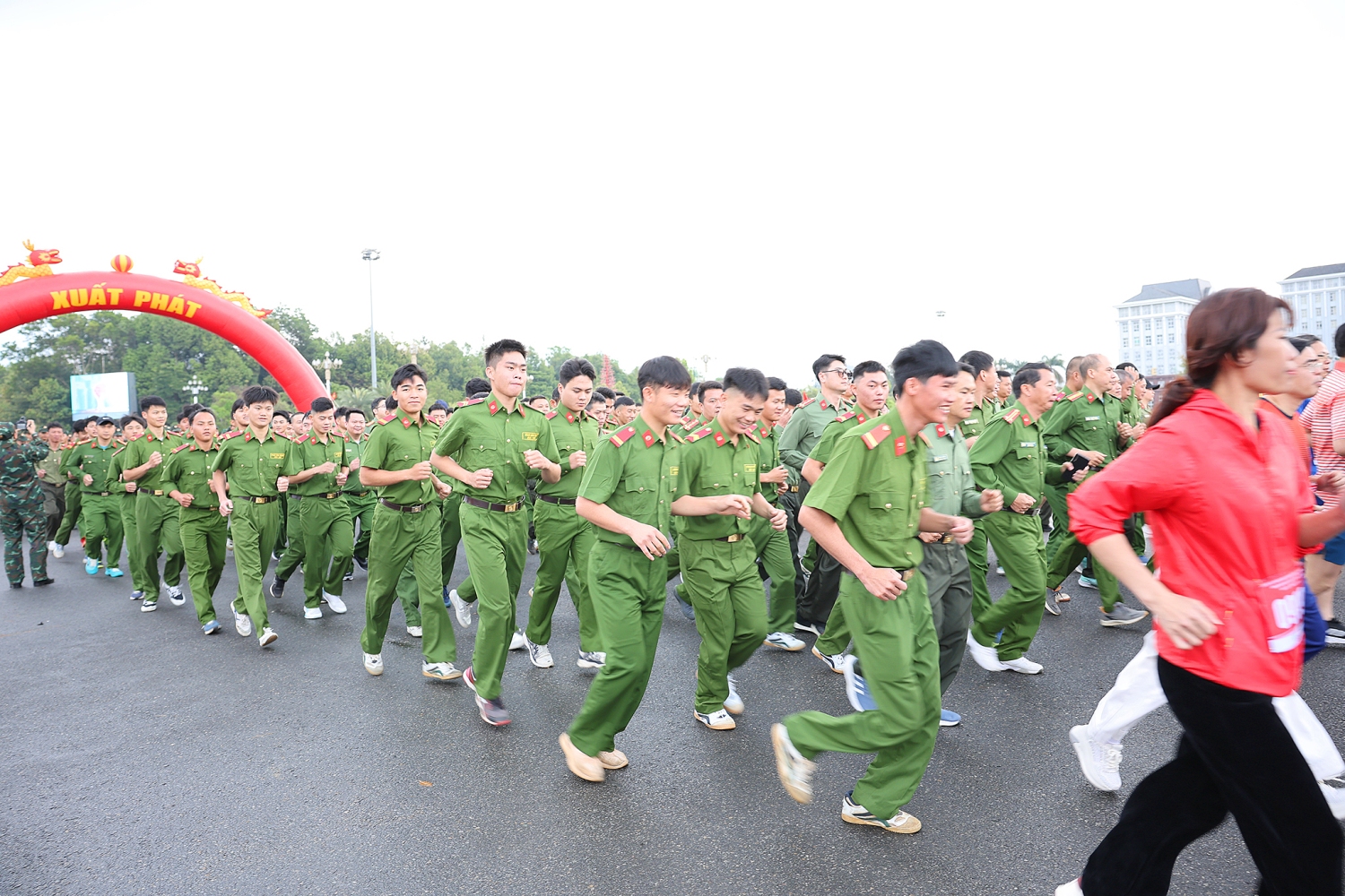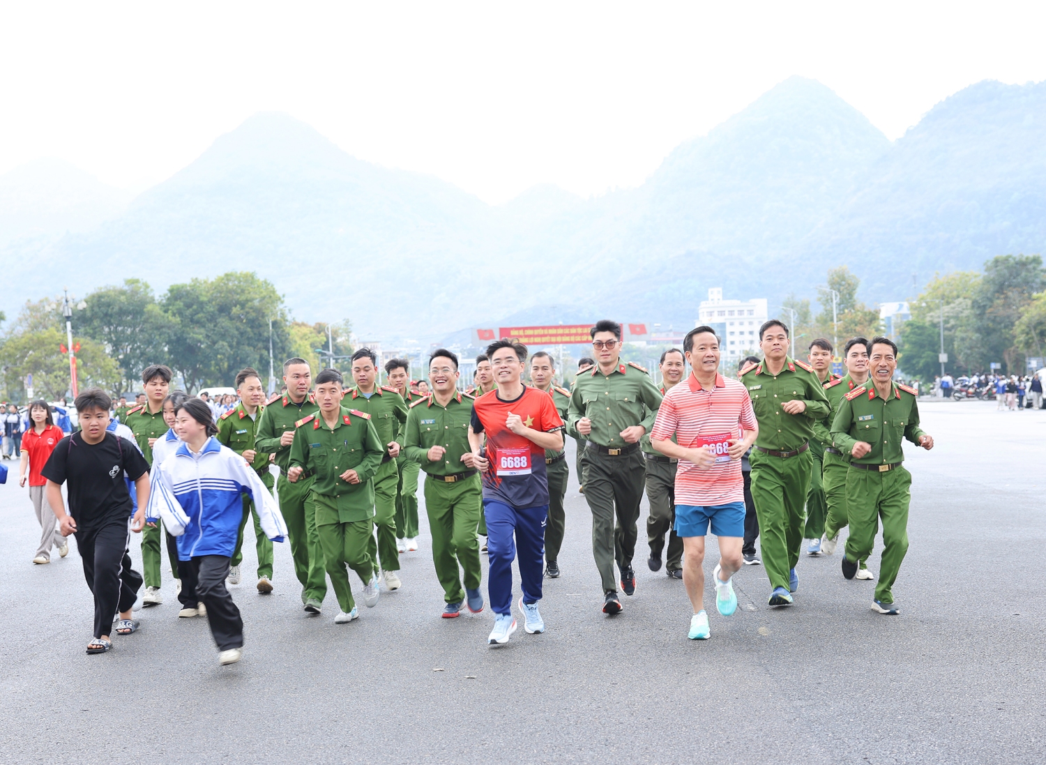 07h30: Ngay sau Lễ khai mạc, khối đội hình Công an tỉnh cùng các đại biểu và đông đảo bà con Nhân dân đã bước vào phần chạy tập thể biểu dương lực lượng với cự ly 1,2 km. Xuất phát từ Quảng trường Nhân dân, dòng người rực rỡ sắc màu đã phủ kín Đại lộ Lê Lợi, đi qua bùng binh Bưu điện tỉnh và vòng về đích đã tạo nên một hình ảnh đoàn kết quân - dân tuyệt đẹp trong buổi sáng mùa xuân.