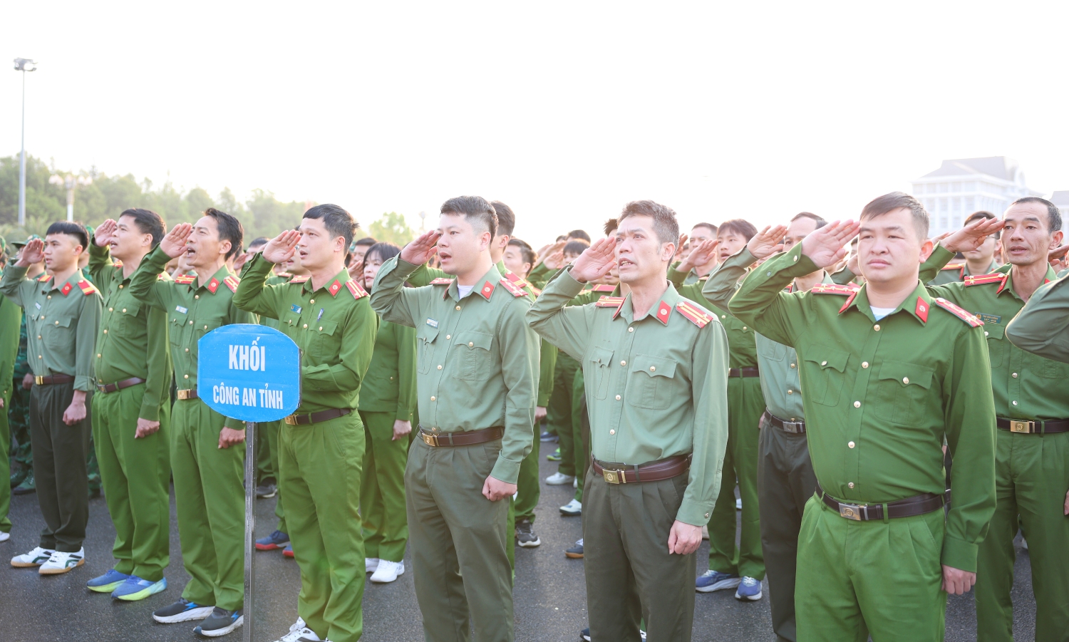 Nổi bật tại sự kiện sáng nay là khối đội hình của lực lượng Công an tỉnh. Hơn 200 CBCS đại diện cho các phòng, ban, đơn vị trực thuộc đã có mặt từ rất sớm trong trang phục thể thao khỏe khoắn, năng động.
