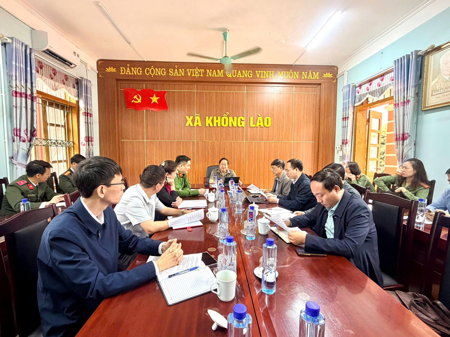Tại buổi làm việc với UBND xã Khổng Lào, Đại tá Phạm Hải Đăng - Phó Giám đốc Công an tỉnh đã báo cáo cụ thể về công tác chuẩn bị cho buổi lễ tại Nhà văn hóa xã Khổng Lào. Theo đó, Công an tỉnh đã chủ động triển khai toàn diện các phần việc: Từ hoàn thiện dự thảo kế hoạch, kịch bản đến phối hợp chặt chẽ với chính quyền địa phương qua nhiều buổi làm việc để thống nhất phương án thực hiện.
