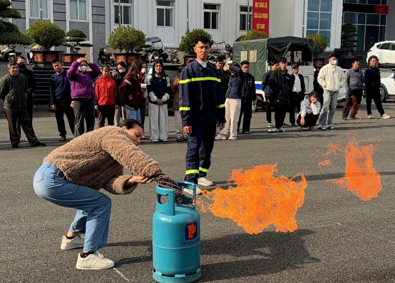 Cán bộ, chiến sĩ Phòng Cảnh sát PCCC và CNCH trực tiếp truyền đạt, hướng dẫn kỹ năng xử lý tình huống cháy, nổ thường gặp; tổ chức thực hành sử dụng phương tiện chữa cháy ban đầu, xử lý sự cố rò rỉ khí gas và dập tắt đám cháy xăng, dầu, qua đó nâng cao khả năng ứng phó, hạn chế thiệt hại khi sự cố xảy ra.