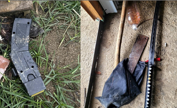 Roi điện, kiếm và dao được thu giữ tại hiện trường.