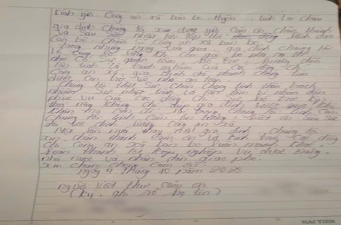 Thư cảm ơn của gia đình gửi đến lực lượng Công an xã Bản Bo