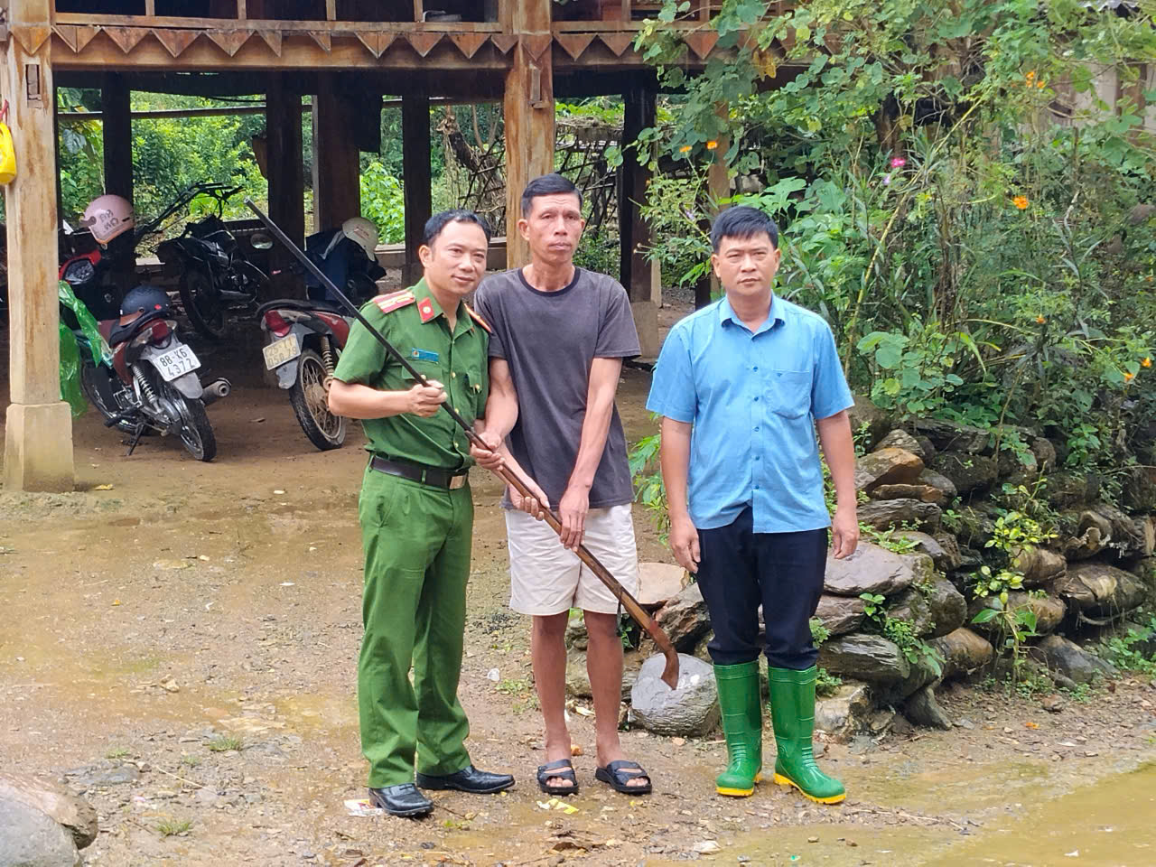 Được sự quan tâm, chỉ đạo sát sao của cấp ủy, chính quyền địa phương, đặc biệt là sự tham gia trực tiếp của đồng chí Vũ Văn Nội – Chủ tịch UBND xã Mường Kim, cùng lực lượng Công an xã đến từng bản, từng hộ dân vận động, tuyên truyền, chỉ sau một ngày triển khai kế hoạch (07/10/2025), nhân dân đã tự nguyện giao nộp 02 khẩu súng kíp tự chế, đảm bảo tuyệt đối an toàn cho người dân và lực lượng làm nhiệm vụ.