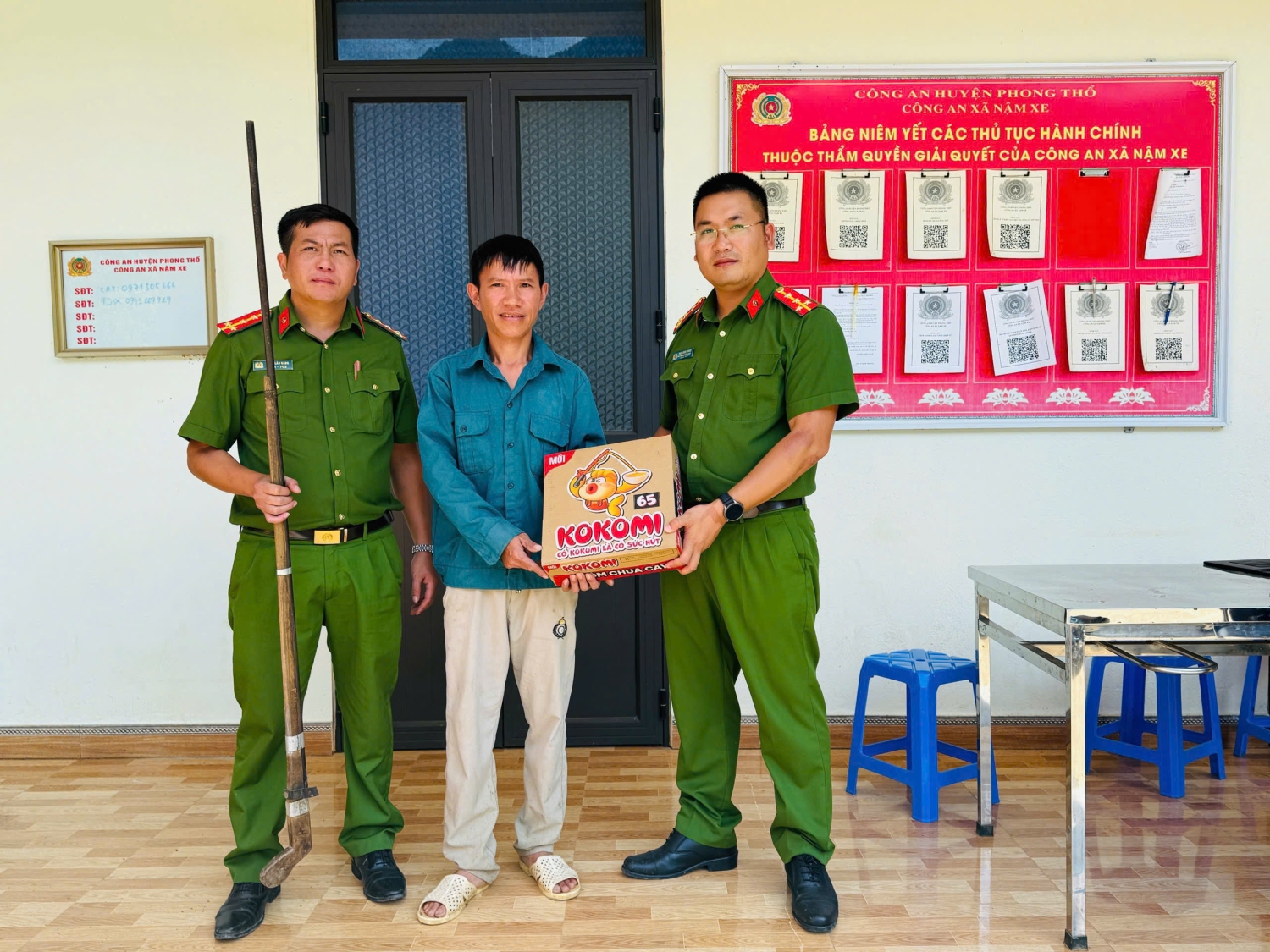 Công an xã tặng quà động viên người dân tự nguyện giao nộp vũ khí