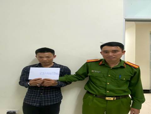 Hình ảnh 1: Đối tượng Mào Văn Thương cùng tang vật tại cơ quan Công an