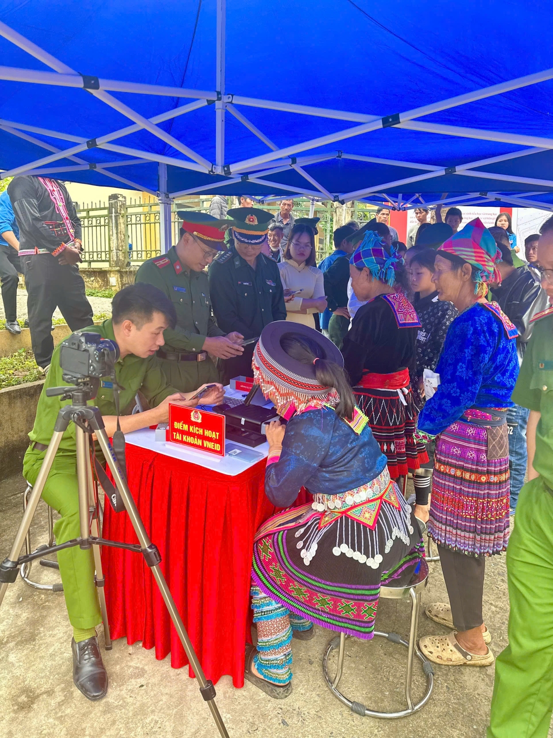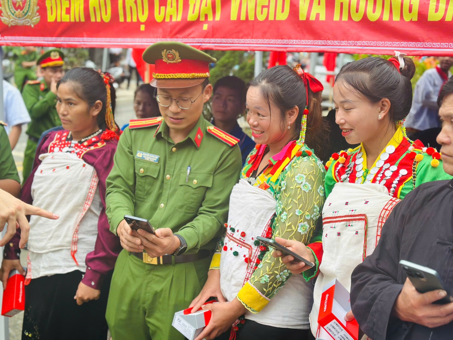Người dân các xã biên giới góp ý Văn kiện Đại hội XIV qua VNeID.