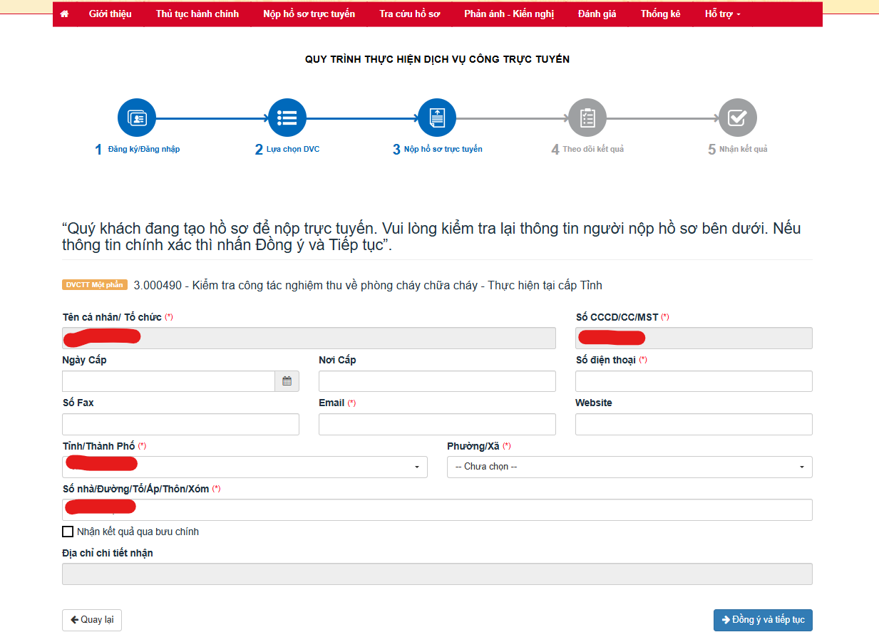 Bước 8: Nhập các thông tin đối với cá nhân, tổ chức/Chọn Đồng ý và tiếp tục.