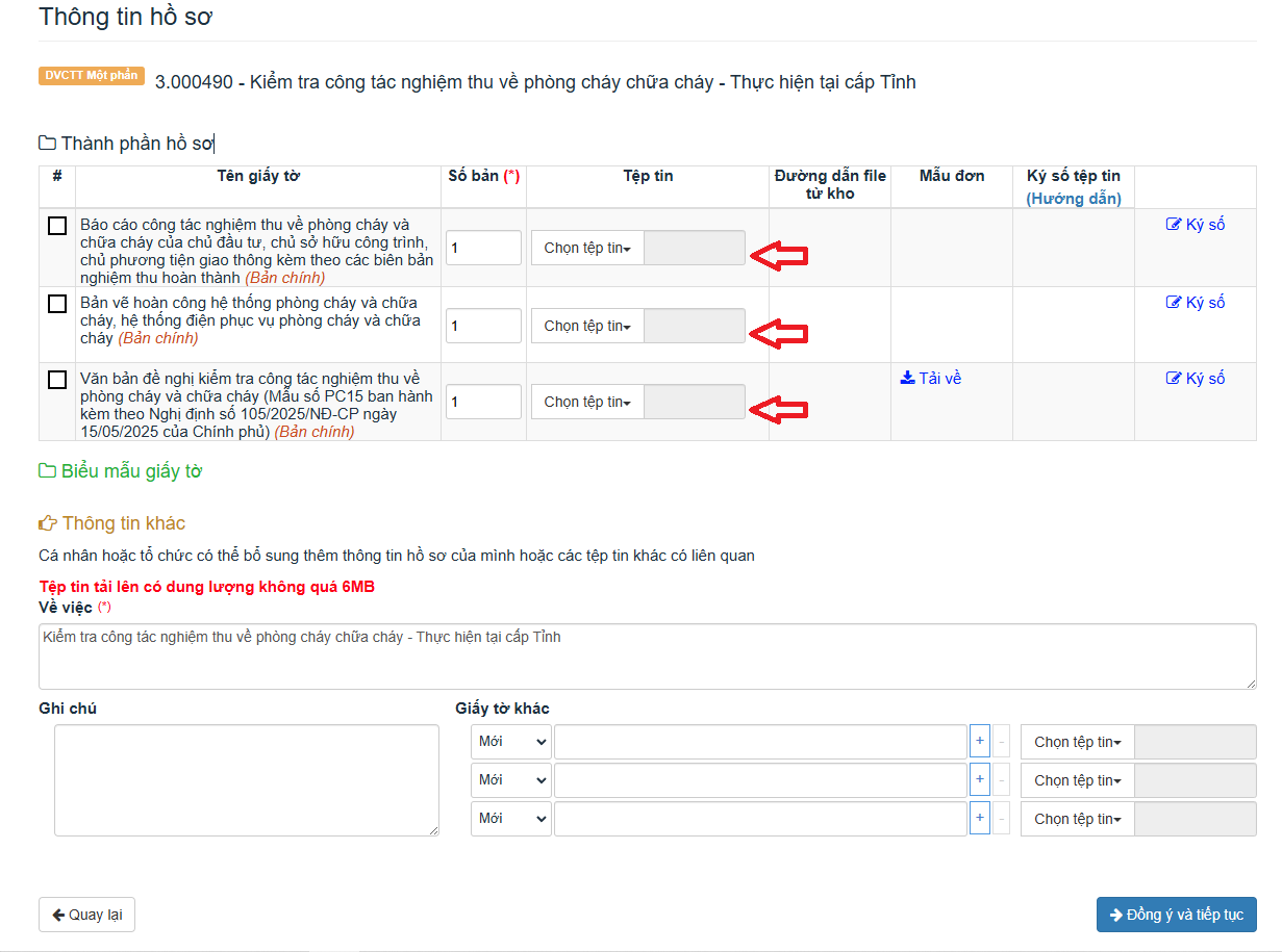 Bước 9: Chọn tải lên tệp tin tương ứng/Chọn Đồng ý và tiếp tục. Bước 10: Chọn Đồng ý và tiếp tục.