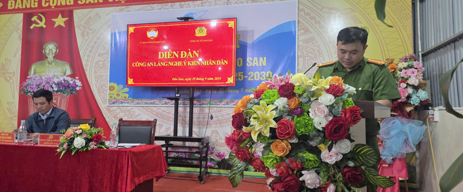 Ngày 29 tháng 09 năm 2025, Công an xã Dào San tổ chức Diễn đàn “Công an lắng nghe ý kiến Nhân dân”, Dự và đồng chủ trì có đồng chí Trung tá Hoàng Anh Thắng – Trưởng Công an xã Dào San và đồng chí Tẩn Seo Phìm – Phó Chủ tịch Ủy ban Mặt trận Tổ quốc Việt Nam xã Dào San. Thành phần tham dự diễn đàn còn có đồng chí Đồng Thị Hồng - Phó Chủ tịch UBND xã và đại diện các ban, ngành, đoàn thể, Đồn biên phòng Dào San, các nhà trường, trạm y tế cùng hơn 100 người dân từ 28 bản trên địa bàn xã.