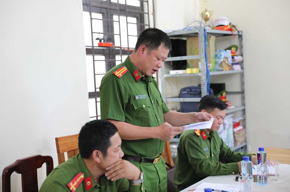 Đại diện Công an xã báo cáo Đoàn làm việc về tình hình ma túy trên địa bàn