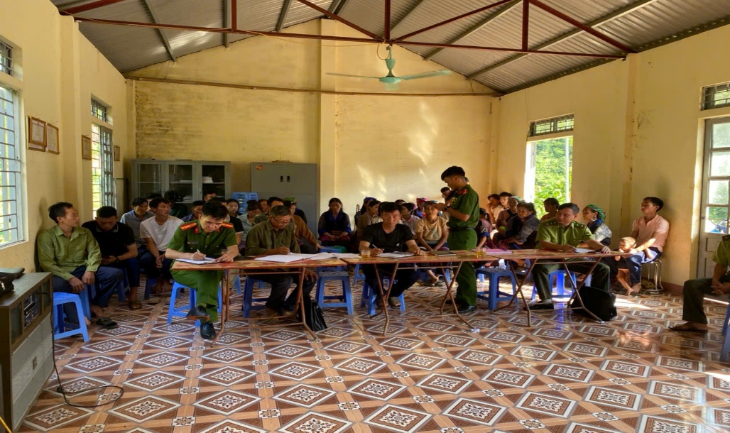 Tại các buổi họp bản, lực lượng Công an xã đã thông tin đến người dân tình hình an ninh trật tự trong thời gian qua, tuyên truyền pháp luật, vận động Nhân dân tích cực tham gia phong trào “Toàn dân bảo vệ an ninh Tổ quốc”, vận động nhân dân tự nguyện giao nộp “vũ khí, vật liệu nổ”, đồng thời ghi nhận, tiếp thu những ý kiến, kiến nghị của bà con về công tác đảm bảo trật tự, an toàn xã hội, quản lý cư trú, phòng chống tội phạm, tệ nạn xã hội, an toàn giao thông và phòng cháy chữa cháy.