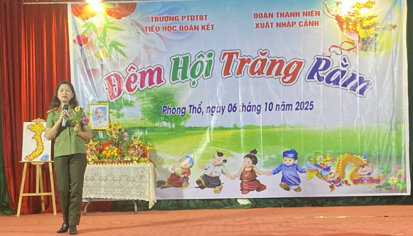 Nhân dịp Tết Trung thu năm 2025, với mong muốn mang đến một mùa Trăng rằm ấm áp và ý nghĩa cho các em thiếu nhi vùng cao, Chi đoàn Phòng Quản lý Xuất nhập cảnh - Công an tỉnh Lai Châu đã phối hợp với Trường Phổ thông dân tộc bán trú Tiểu học Đoàn Kết tổ chức chương trình "Đêm hội Trăng rằm" và trao tặng quà cho các em học sinh có hoàn cảnh khó khăn tại điểm trường bản U Gia, xã Phong Thổ, tỉnh Lai Châu.
