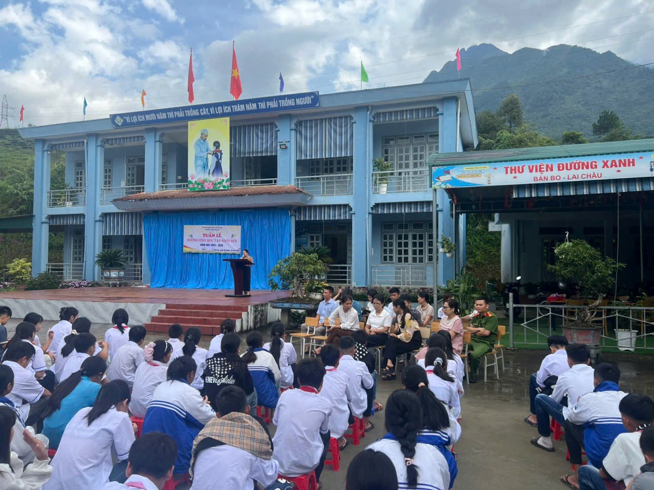 Toàn cảnh buổi tuyên truyền tại trường Trung học cơ sở xã Bản Bo