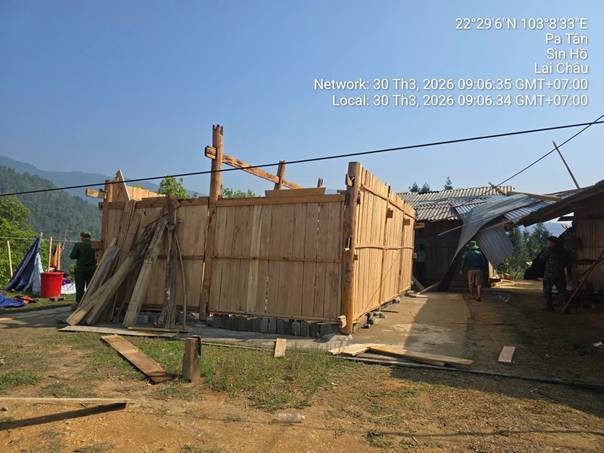 Do ảnh hưởng của các đợt mưa lớn kèm theo dông lốc trong những ngày cuối tháng 3/2026, nhiều nhà dân trên địa bàn xã Pa Tần đã bị hư hỏng nặng, ảnh hưởng trực tiếp đến đời sống sinh hoạt. Điển hình, căn nhà của gia đình chị Thào Thị Dung (trú tại bản Nậm Tần Mông 2, xã Pa Tần) đã bị gió lốc làm tốc mái hoàn toàn, gãy đổ nhiều xà, cột chịu lực.
