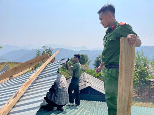 Trước tình hình đó, thực hiện chỉ đạo của Ban Chỉ huy, lực lượng Công an xã Pa Tần đã chủ động bám nắm địa bàn, nhanh chóng triển khai các phương án ứng cứu. Đơn vị đã huy động 100% cán bộ, chiến sĩ phối hợp cùng Lực lượng tham gia bảo vệ an ninh, trật tự ở cơ sở, lực lượng Dân quân tự vệ và quần chúng nhân dân khẩn trương giúp đỡ gia đình chị Thào Thị Dung cũng như các hộ dân khác dọn dẹp hiện trường, lợp lại mái nhà và gia cố cấu trúc nhà cửa.